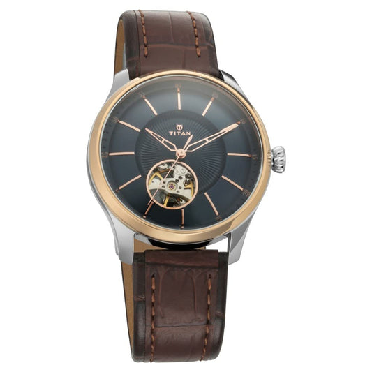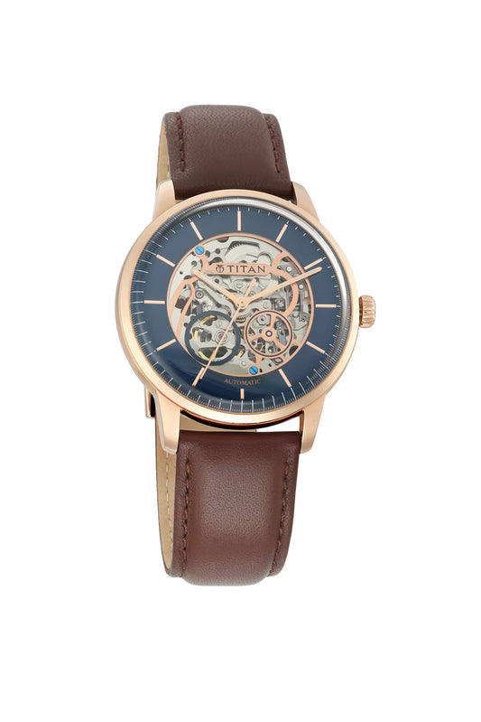 Titan Mechanical Analog Blue Dial Men's Watch 90110WL02/NN90110WL02/NP90110WL01 Genuine Leather, Brown Strap