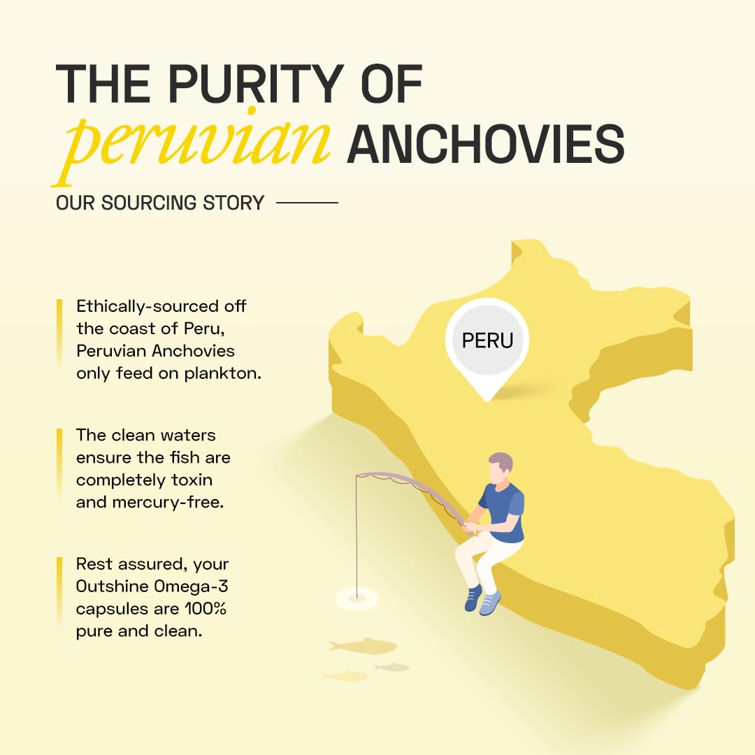 - Quadruple Strength Formula: Our Omega 3 capsules made with Peruvian anchovies deliver a potent dose of essential fatty acids with 4X strength, containing 743mg EPA and 528mg DHA. This ensures maximum benefits for heart, brain, joints, and eyes. Additionally, our product is mercury-free, offering a pure and safe option for daily wellness support.