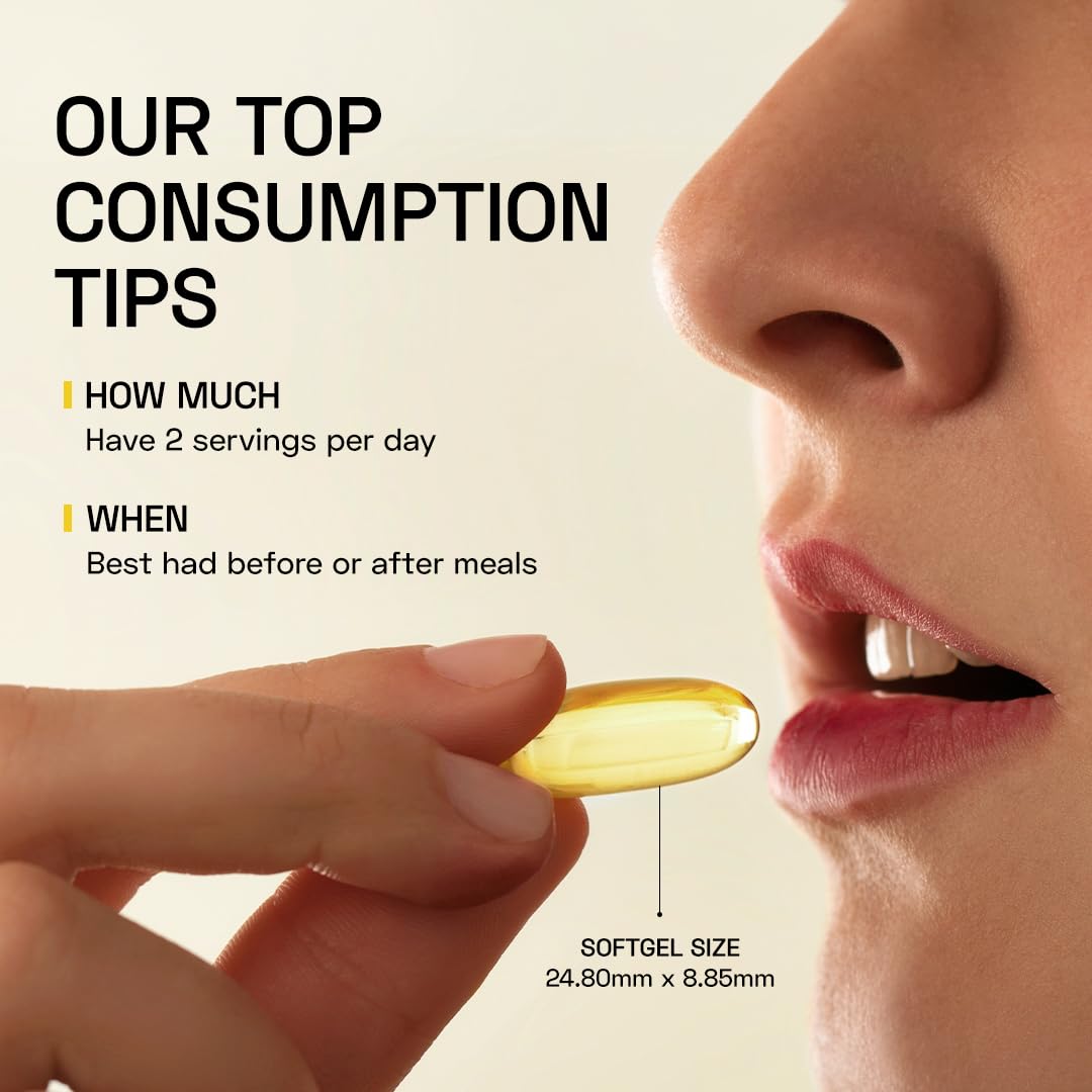 - Infused with Peppermint Oil: Unlike traditional Omega 3 supplements, our Omega 3 capsules are infused with refreshing peppermint oil. This unique addition not only improves the taste but also eliminates the common issue of fishy aftertaste and burps. Enjoy a pleasant and easy-to-consume Omega3 supplement that fits seamlessly into your daily routine without any unpleasant side effects.