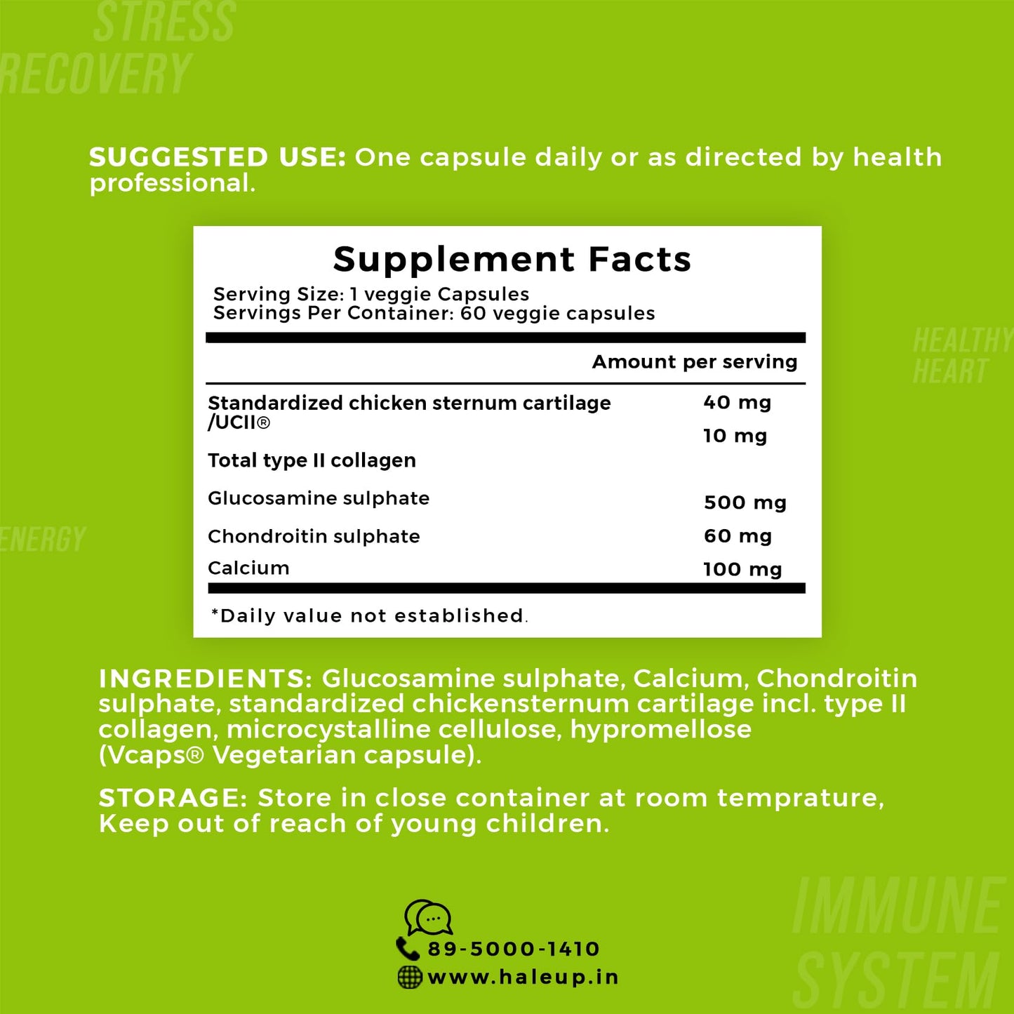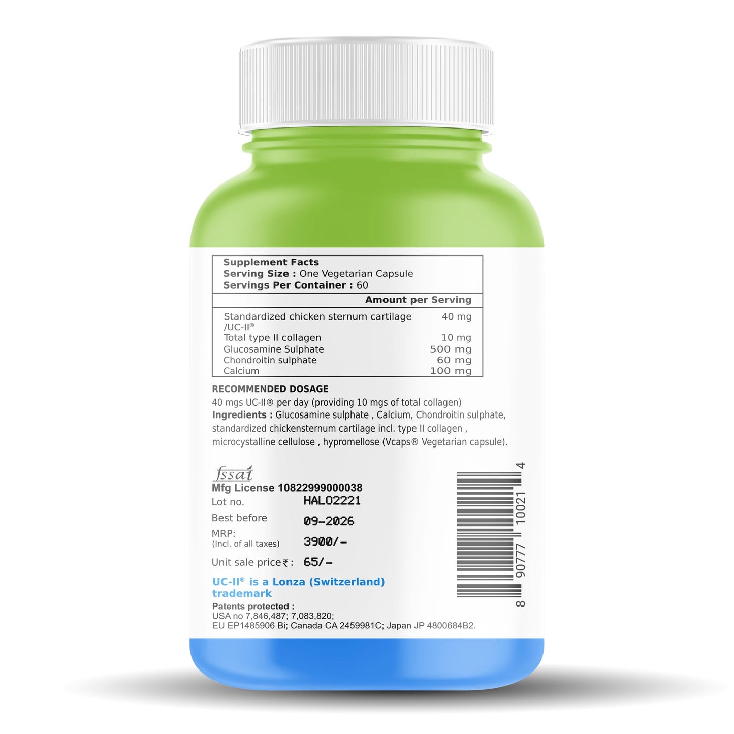 Advanced UC-II Interhealth,Undenaturated Natural Type 2 Collagen,Glucosamine,Chondroitin And Calcium - 60 Veg Capsules (Pack Of 1)