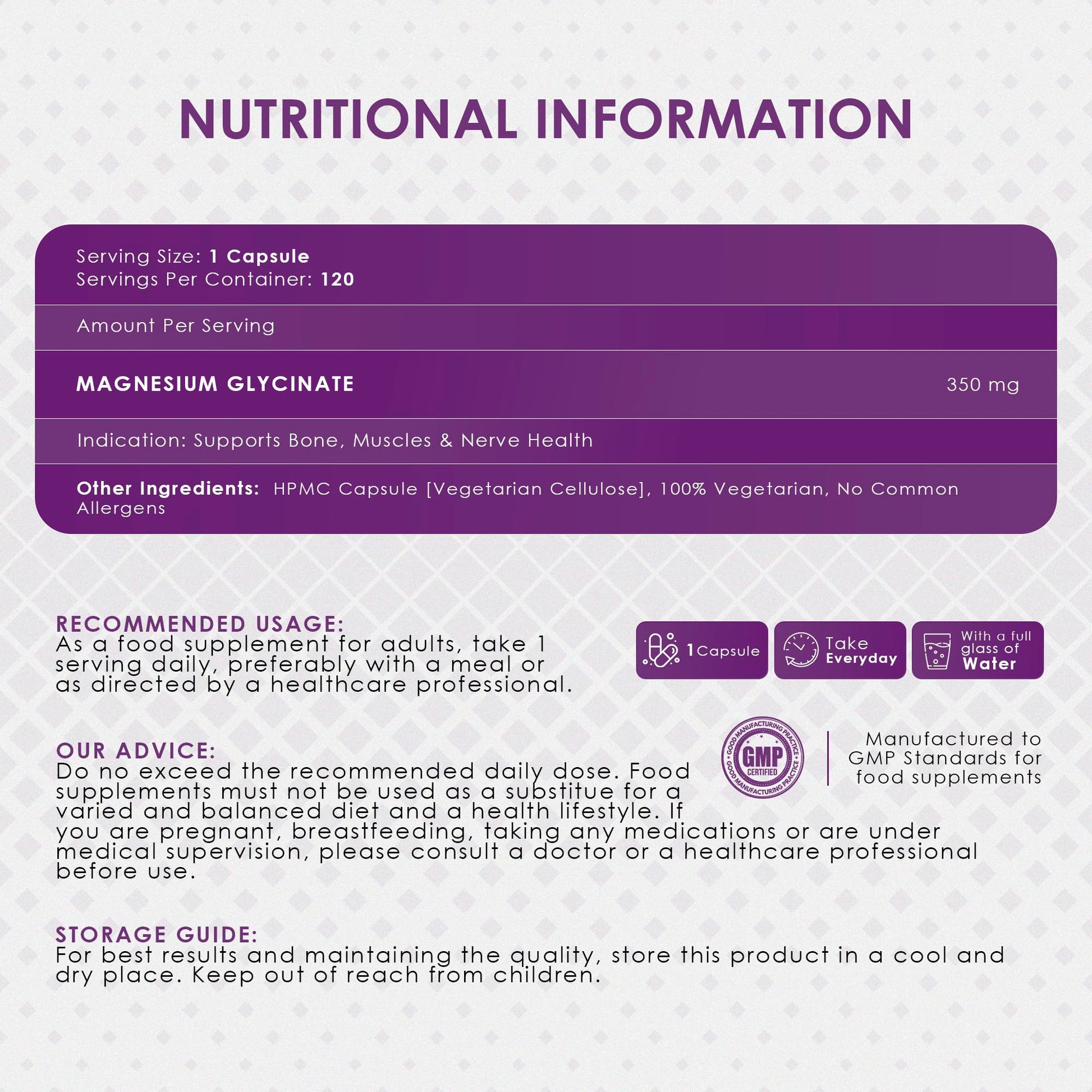 - WHY AMBROSIAL MAGNESIUM GLYCINATE: Each Ambrosial Magnesium Glycinate chelated veg capsule contains 350mg, also known as magnesium bisglycinate, a crucial amino acid that supports healthy magnesium levels. Our easy-to-swallow veg capsules leave no aftertaste, making them suitable for both men and women seeking high-strength magnesium supplement.