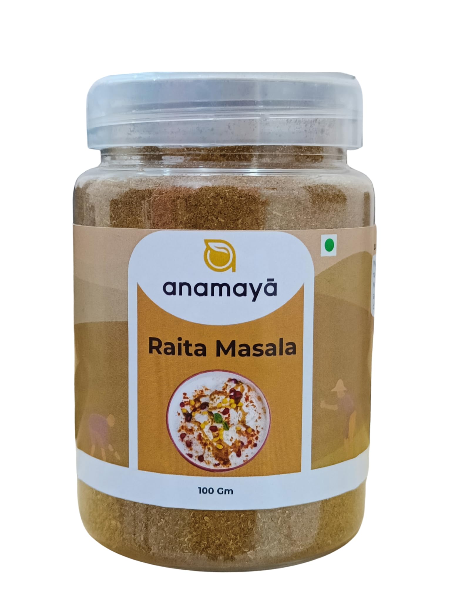 - U.P. Delight - Raita Masala: Immerse in the authentic flavors of Uttar Pradesh with Anamaya's Raita Masala. Packed in a 100g jar, it's perfect for lassi masala, dahi bhalla, and more, bringing the rich taste of U.P. to your kitchen.