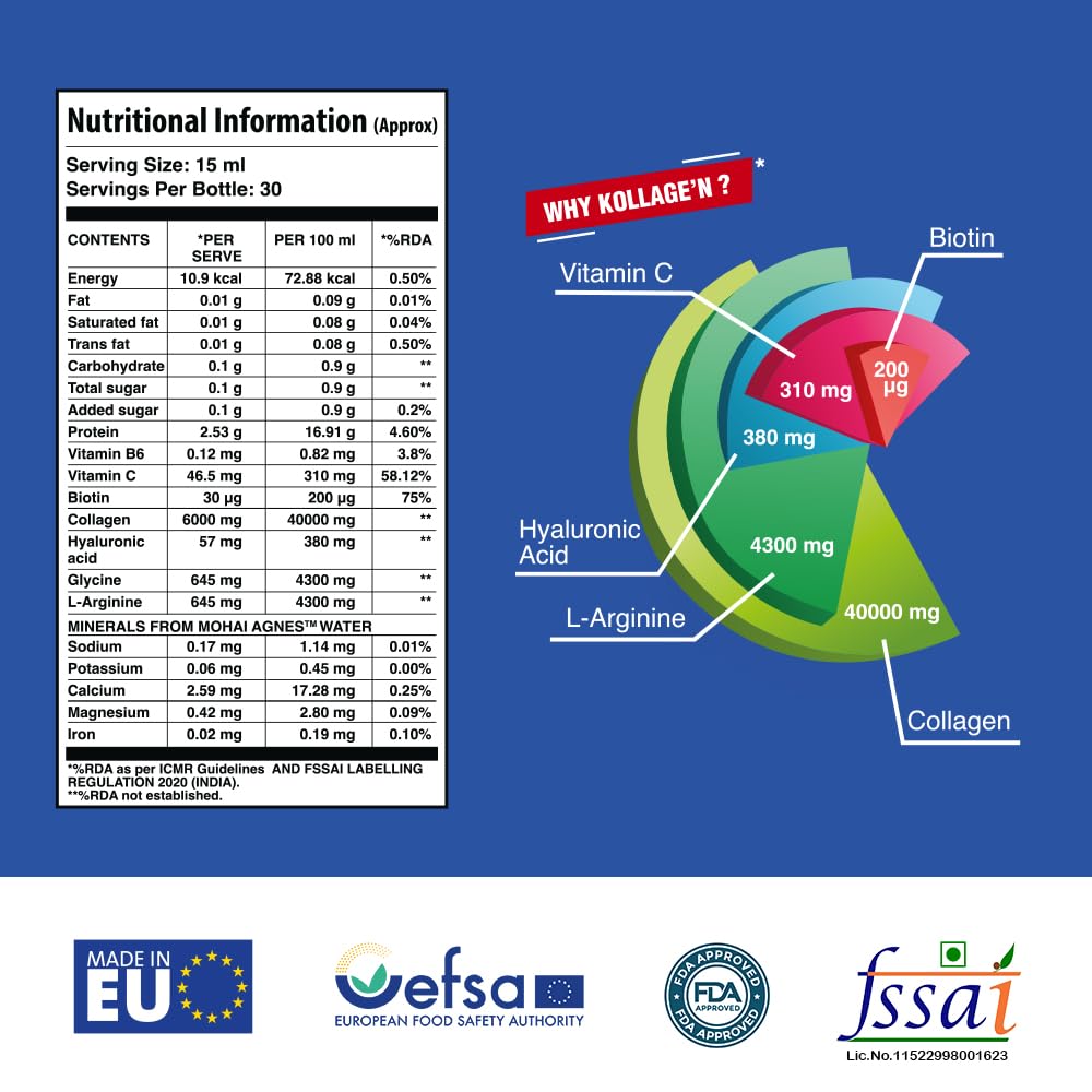 - Fast Absorption Liquid Collagen: India’s first liquid collagen made with Mohai Ignes Mineral Water for better cellular absorption, improving bioavailability compared to powdered collagen.