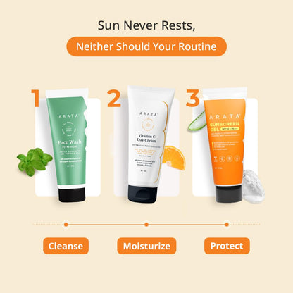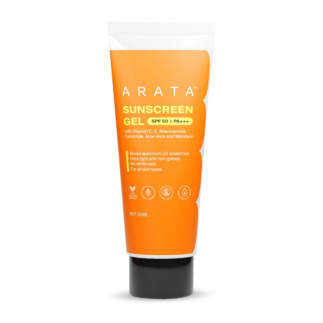 Arata Sunscreen Gel SPF 50+ & PA+++ Ultra Light & Balancing for Broad Spectrum UVA & UVB Protection | All Skin Types | All-Natural, Non-Toxic (50 ML)