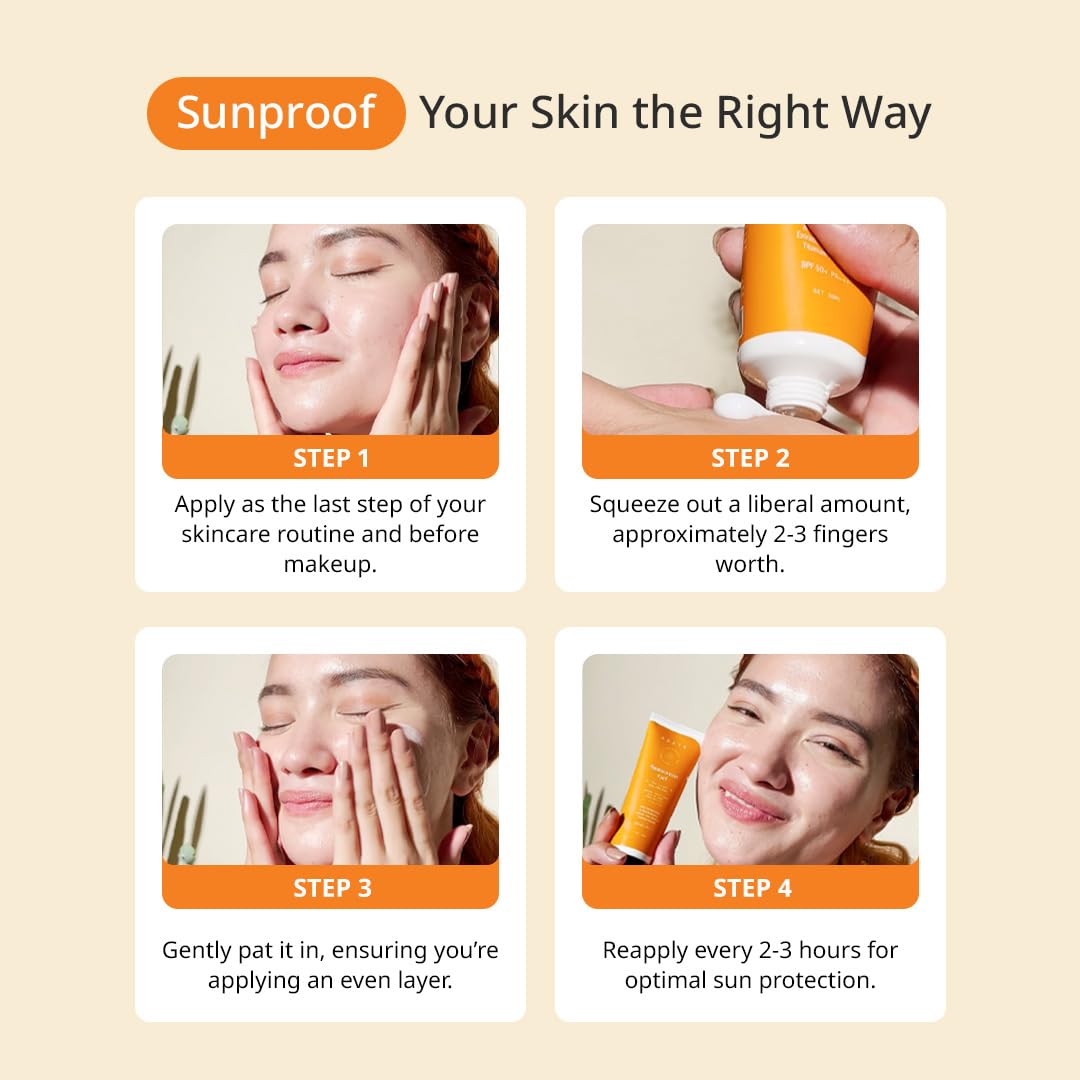 - SPF 50+, PA+++: Along with being PA+++ certified, our sunscreen with SPF 50+ contains zinc oxide and titanium dioxide, the safest, most effective active sunscreen ingredients, along with cooling aloe vera to prevent redness caused by sunlight.
