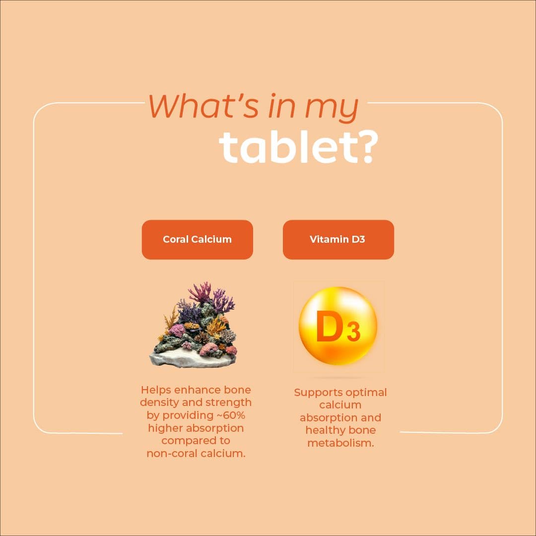 - 60% HIGHER ABSORPTION WITH CORAL CALCIUM – Unlike many calcium supplements that are hard to digest or poorly absorbed,our calcium supplement is made with bioavailable coral calcium, that offers up to 60% better absorption for superior bone and joint support. Each calcium tablet includes vitamin D3 and clean, plant-based ingredients, specially crafted for you.
