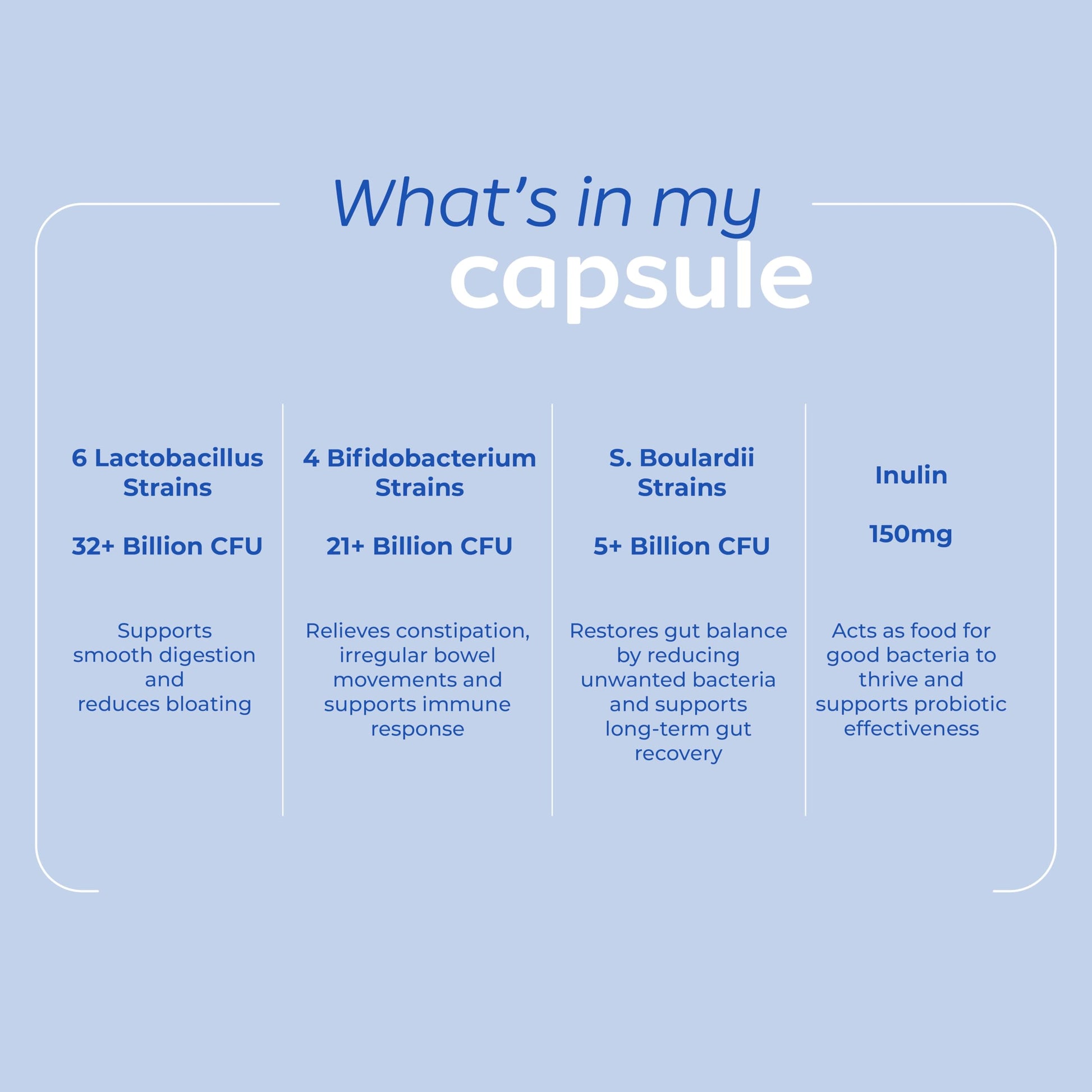 - 60 BILLION CFU WITH CLINICALLY STUDIED STRAINS: Each capsule delivers 60 Billion CFU from 10 powerful probiotic strains including Lactobacillus, Bifidobacterium, and Saccharomyces boulardii, combined with prebiotics for enhanced efficacy. This prebiotic + probiotic blend is designed to nourish your gut microbiome and optimize digestion.