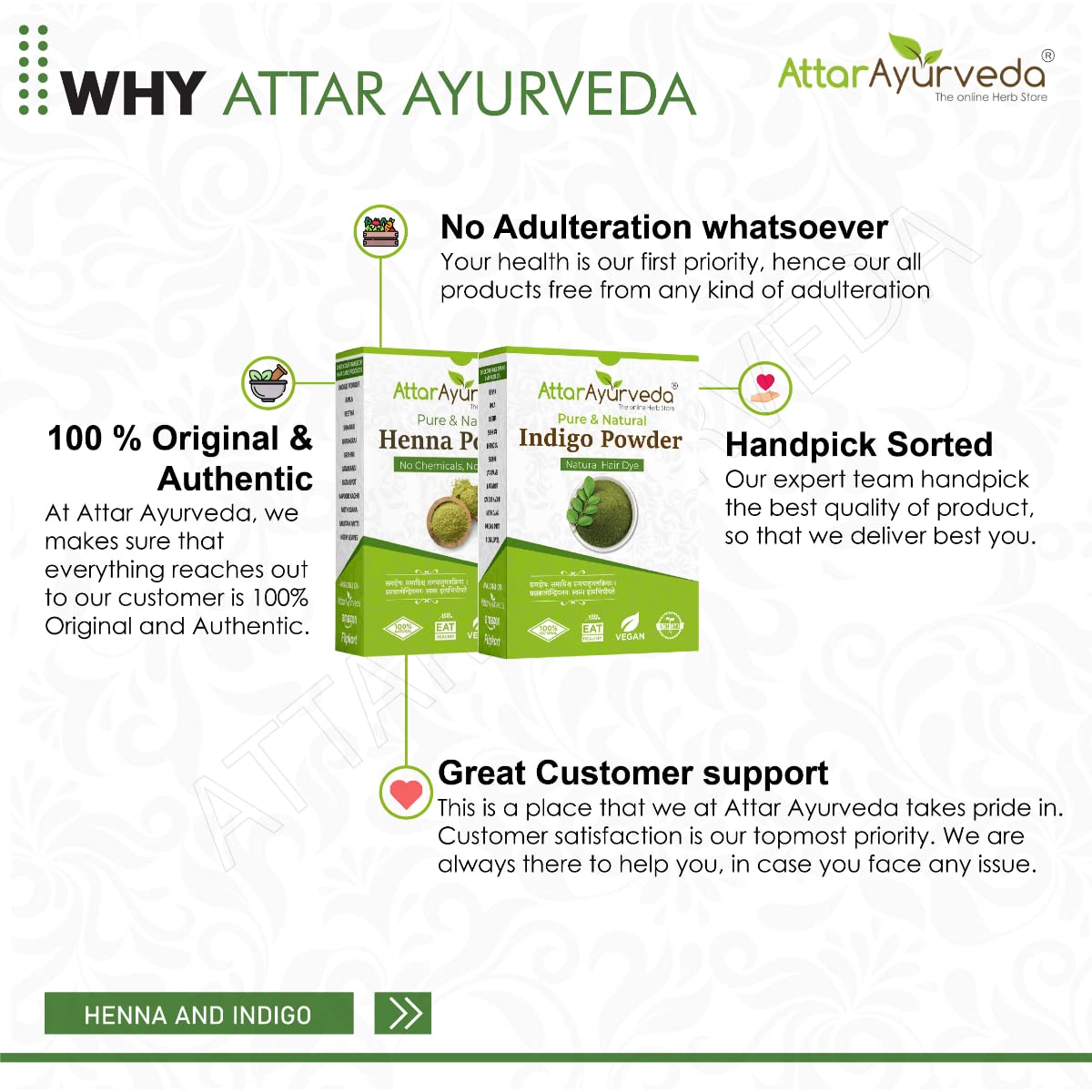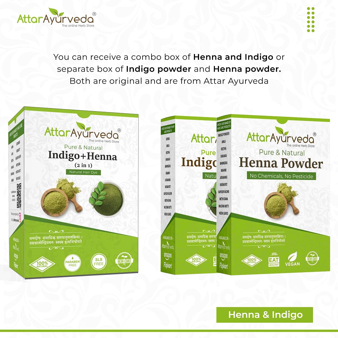 - In this pack you will get: 200 grams Henna Leaves powder 200 grams and Indigo Leaves powder