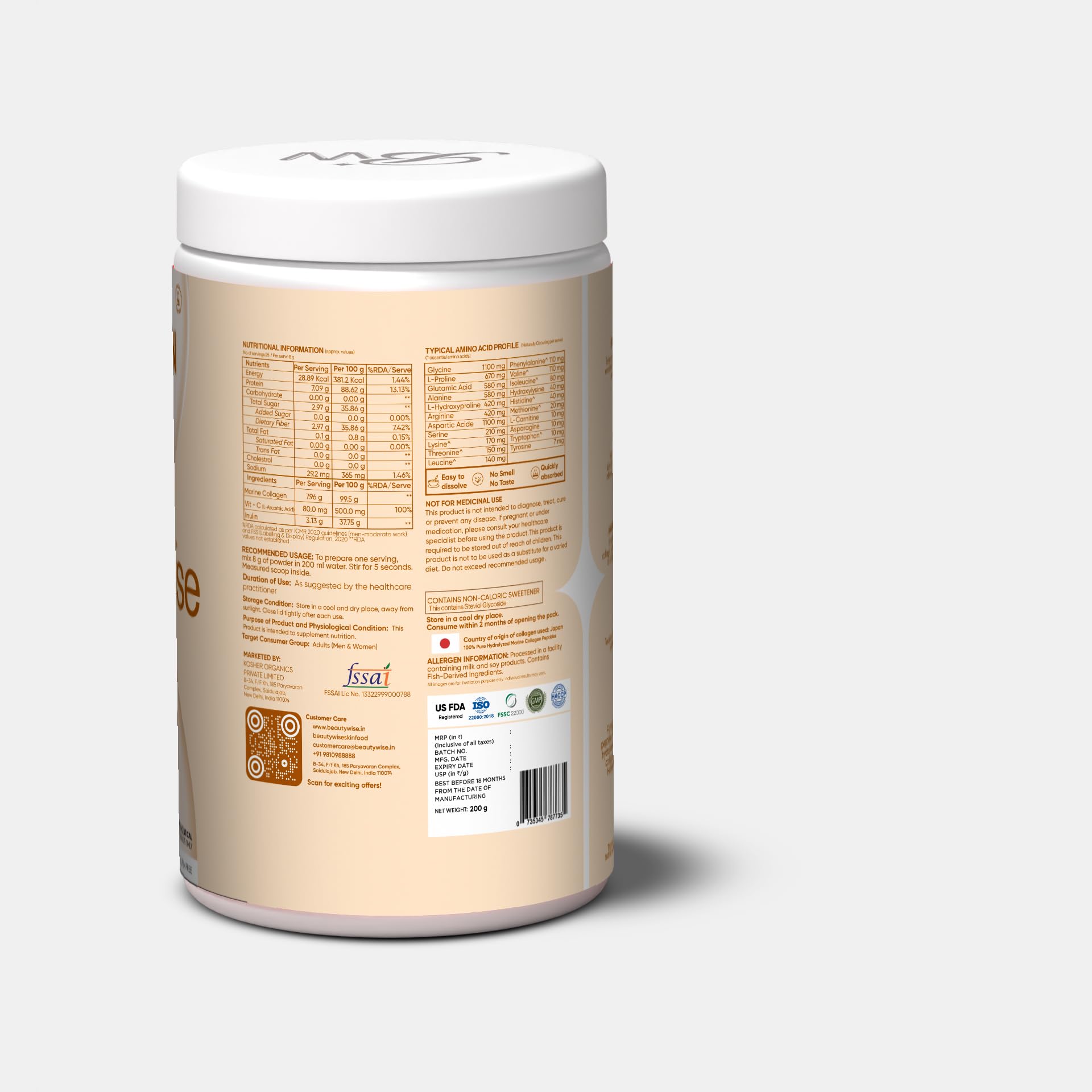 Beautywise Advanced Marine Collagen Peptides With Hyaluronic Acid, Glutathione & Biotin | No Smell & Easy To Mix With No Added Sugar 200G (Unflovoured Pack Of 1)