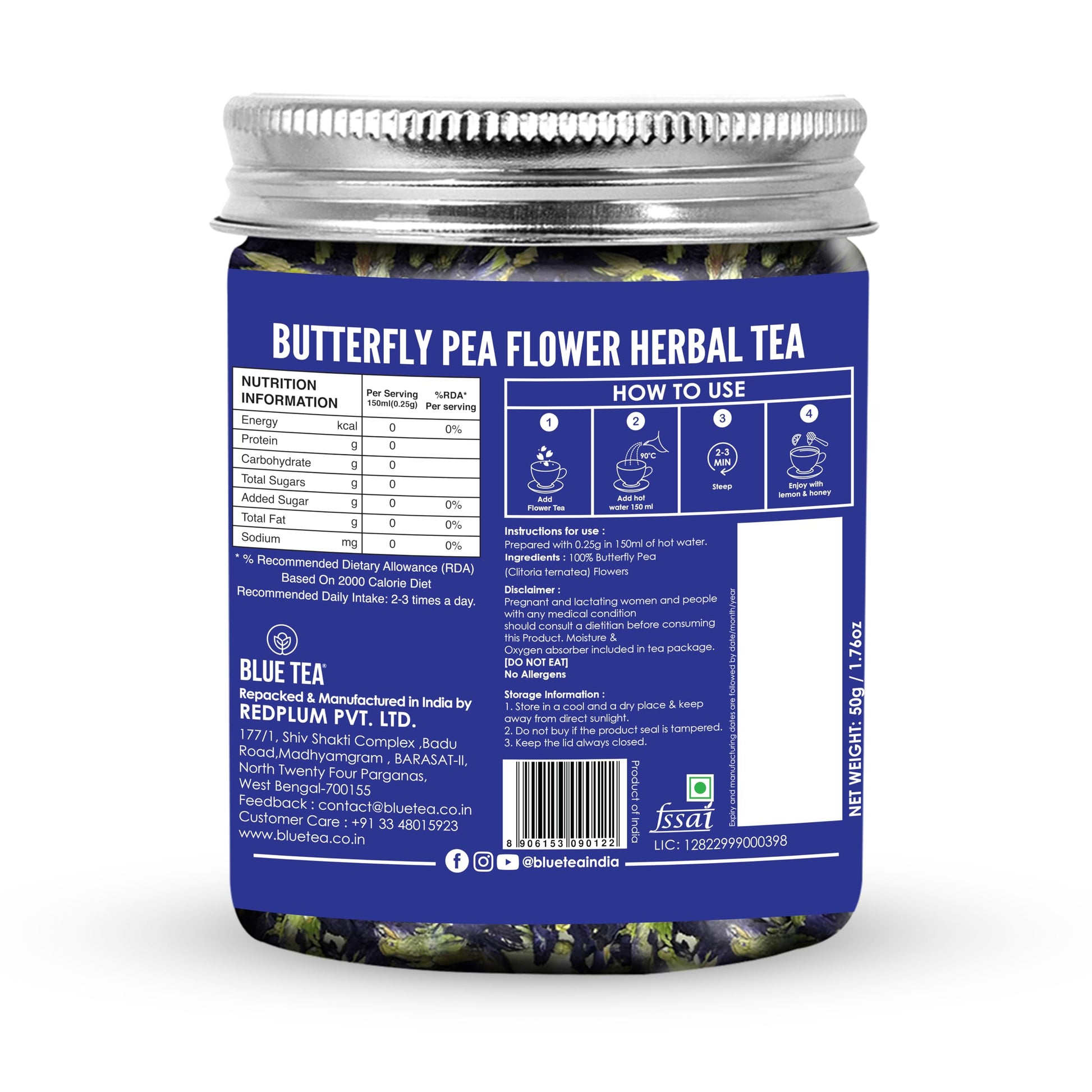 - INGREDIENT: Natural Butterfly Pea Flowers sun-dried and packed loose.