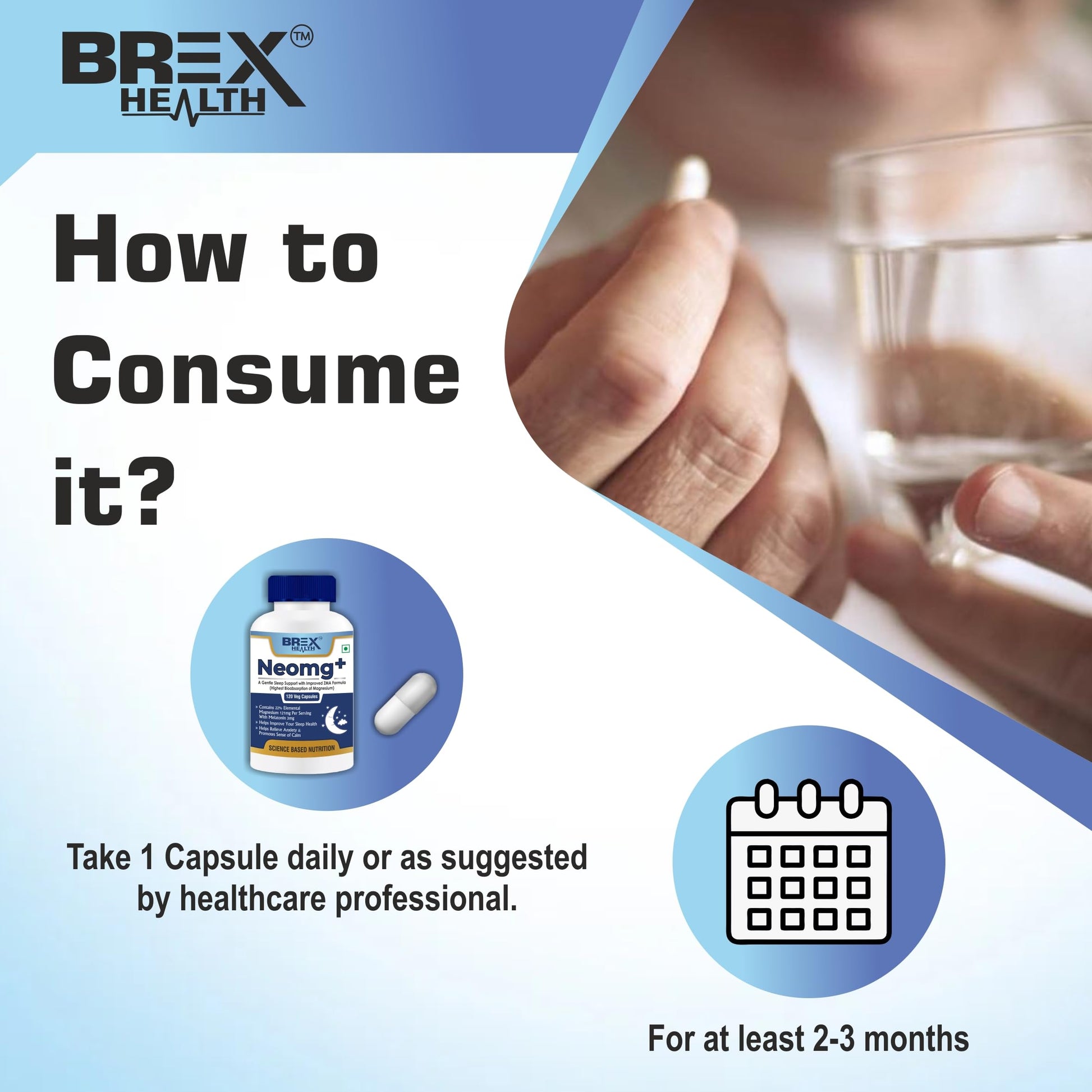 Brexhealth Neomg+ Highest Bioabsorption Of Magnesium Glycinate With Zinc, Valerian Root, Vitamin B6 & D3-120 Veg Capsules, Pack Of 1