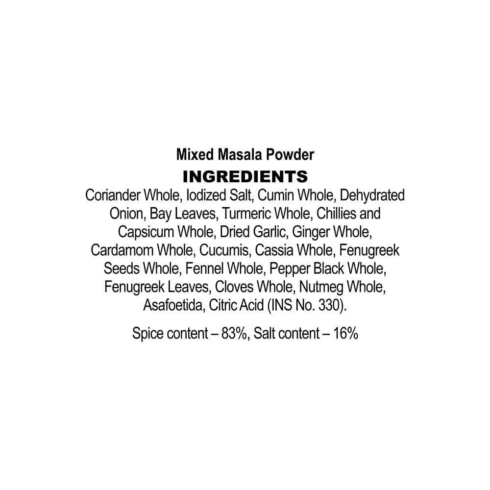 - Low Temperature Grinding (LTG): Processed using LTG technology, this masala retains the natural oils and freshness of spices, ensuring the highest quality in every spoonful