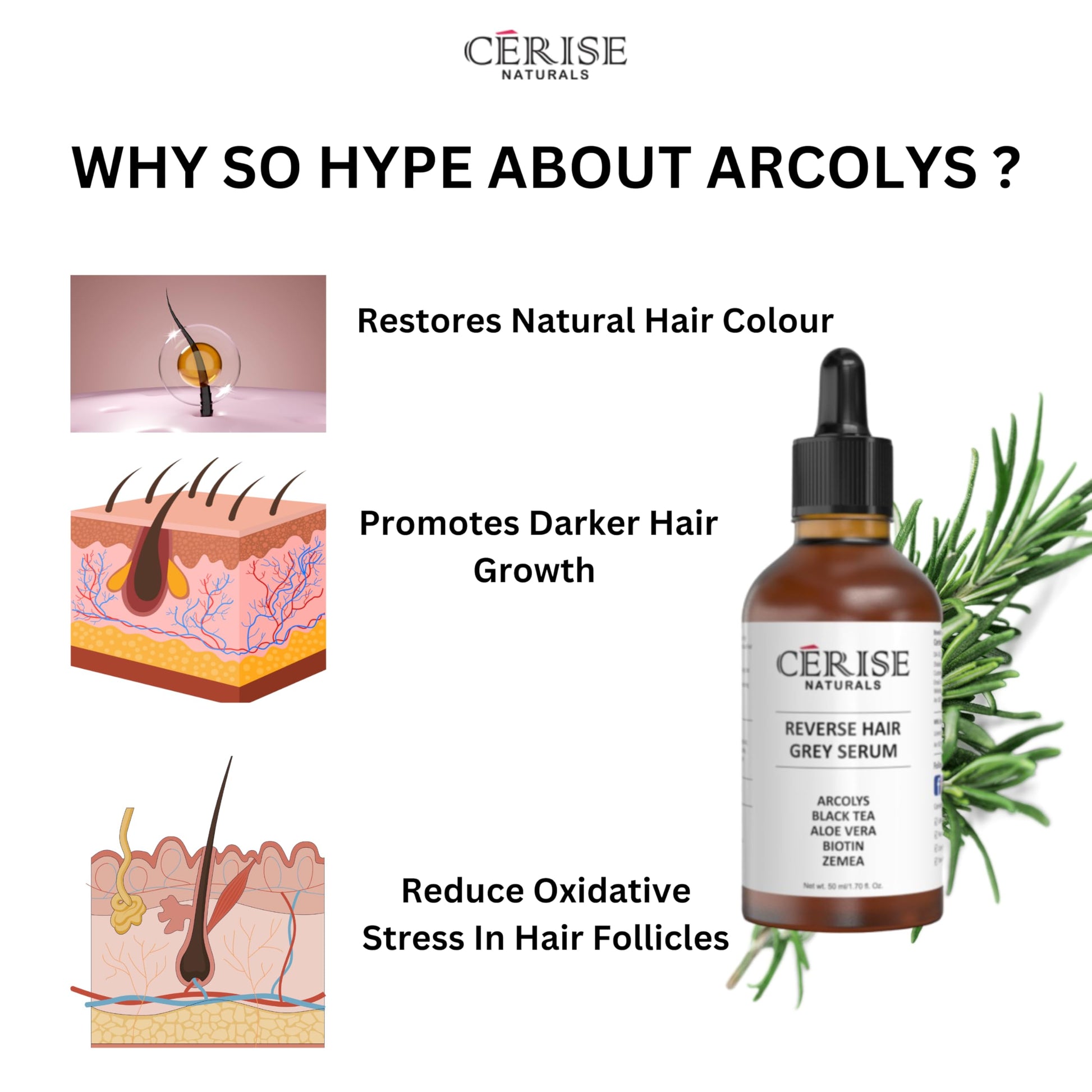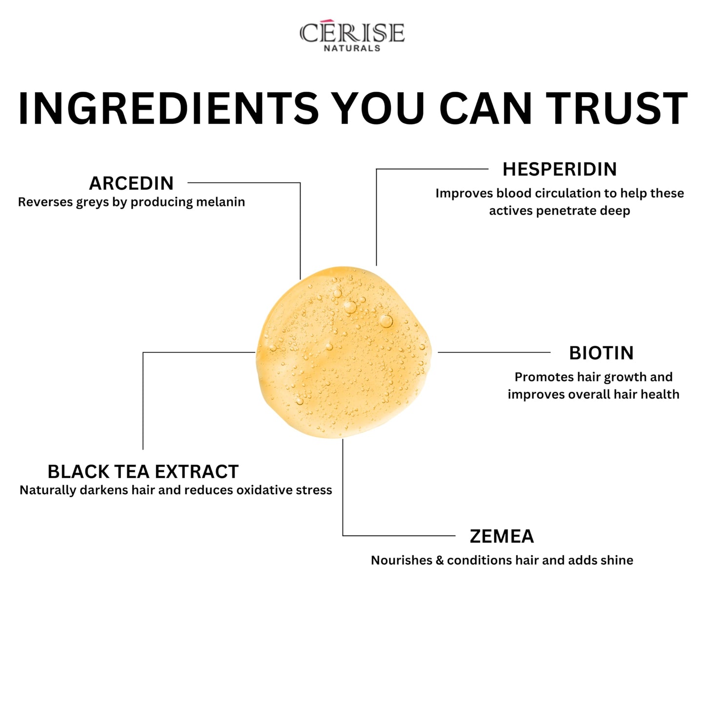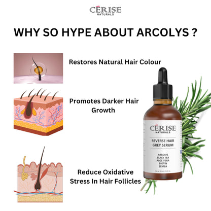 Cerise Naturals Anti-Grey Hair Serum With Arcolys, Black Tea, Zemea, Biotin, Aloe Vera, All Hair Types, Toxin Free-50 Ml