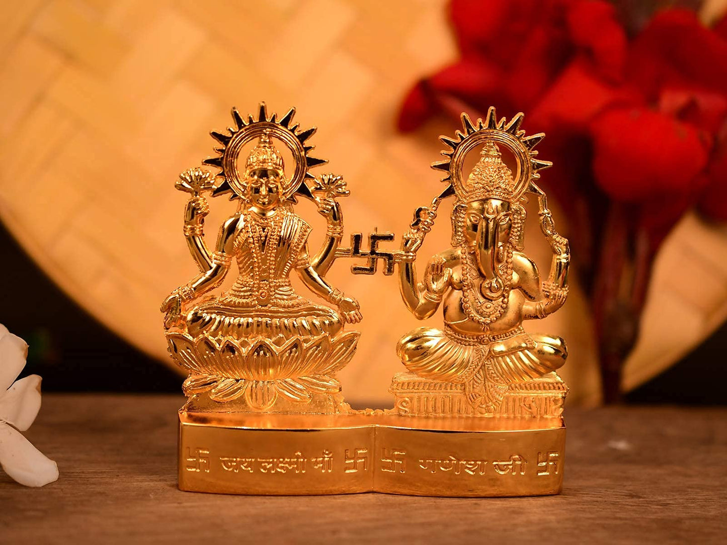 Collectible India Lakshmi Ganesha murti Idol Set for Puja Home Decoration Car, Idols Ganesh Laxmi Statue Car Dashboard Desktop Decor (1)