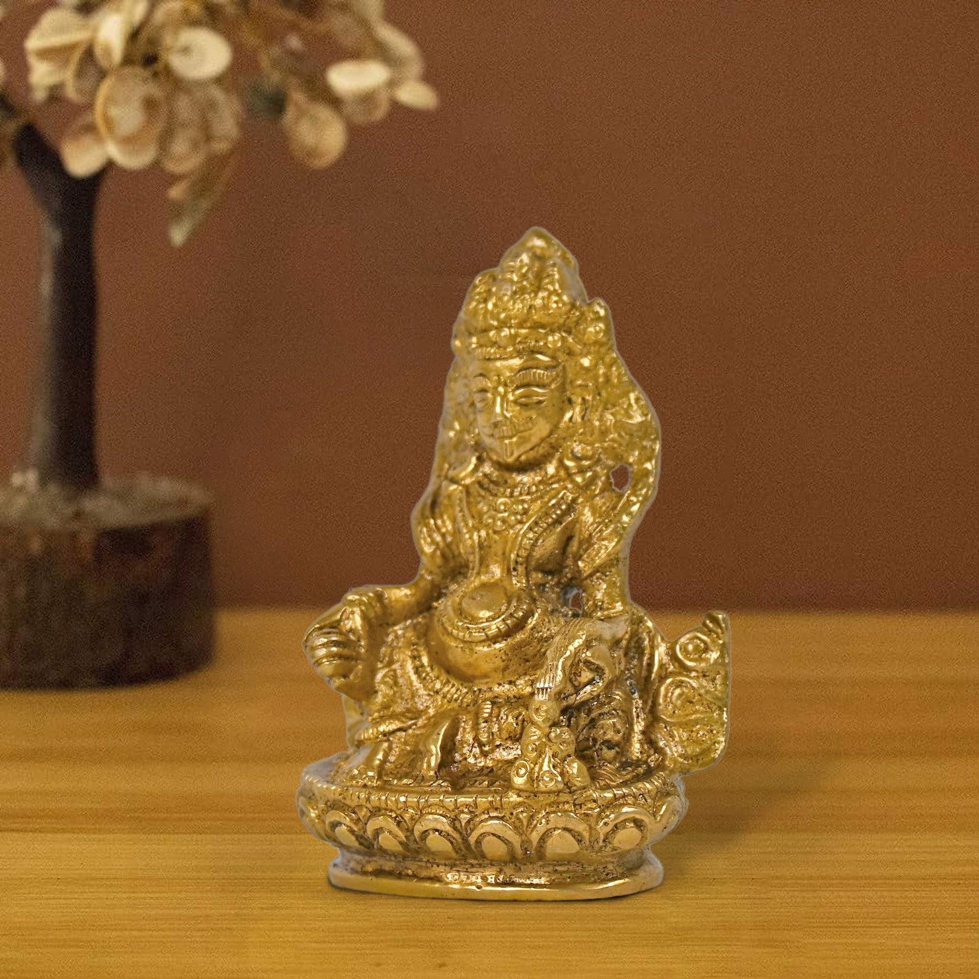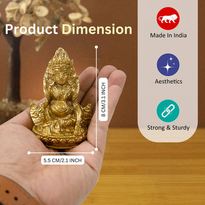 Unique Brass Kuber Maharaj Murti Lord of Wealth Kubera Statue Idol for Tijori Locker Money Safe (2.5X1.5X4.5 Inches)