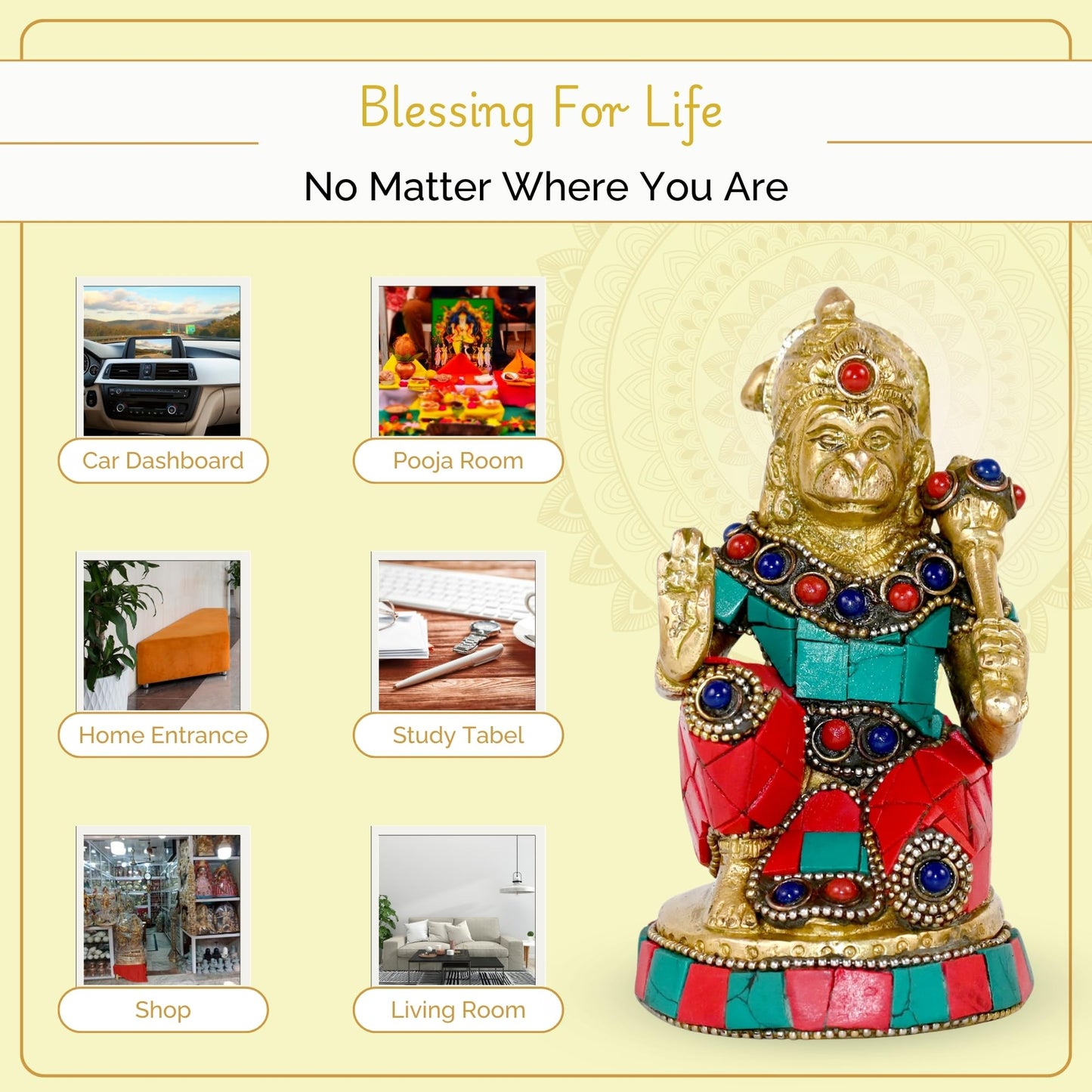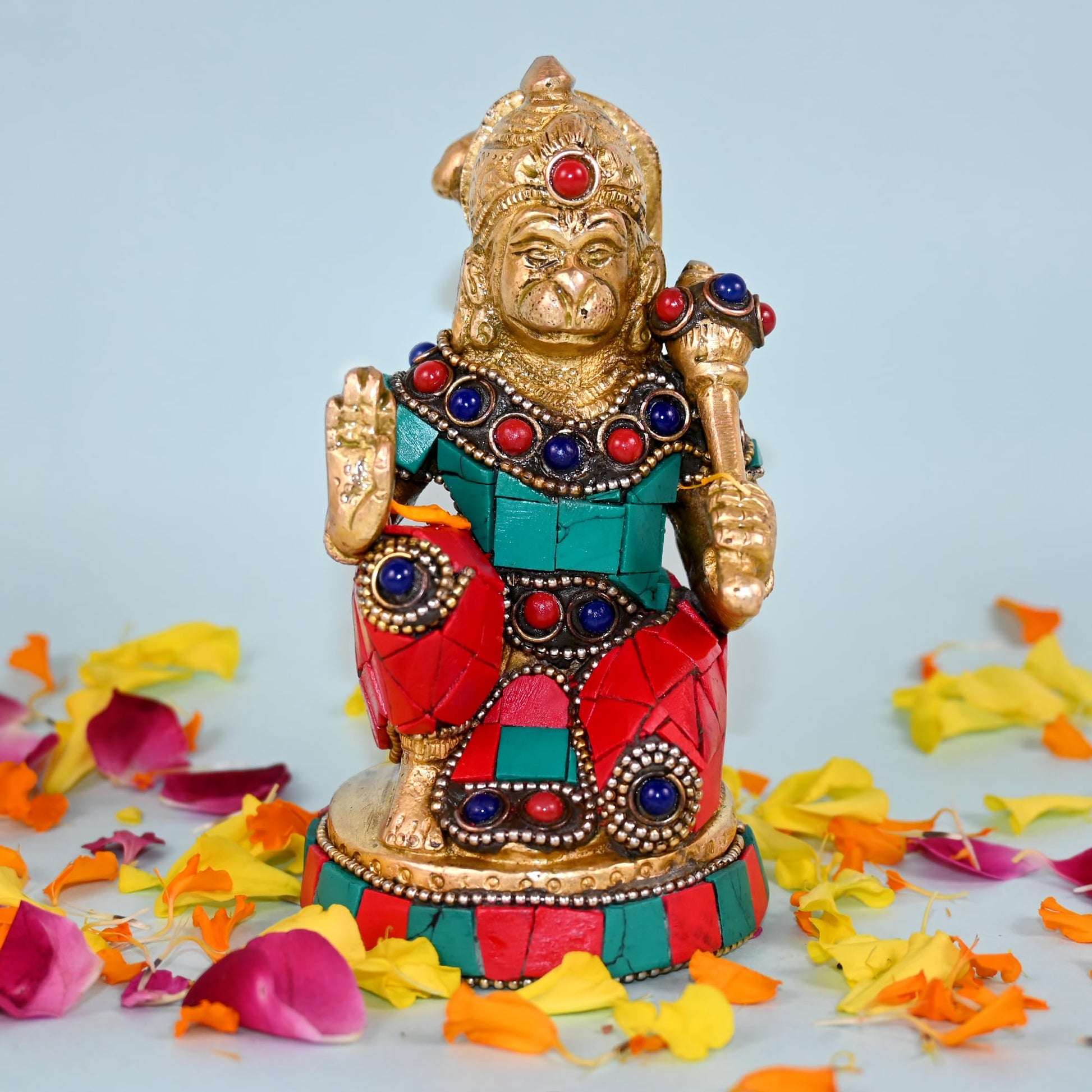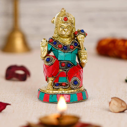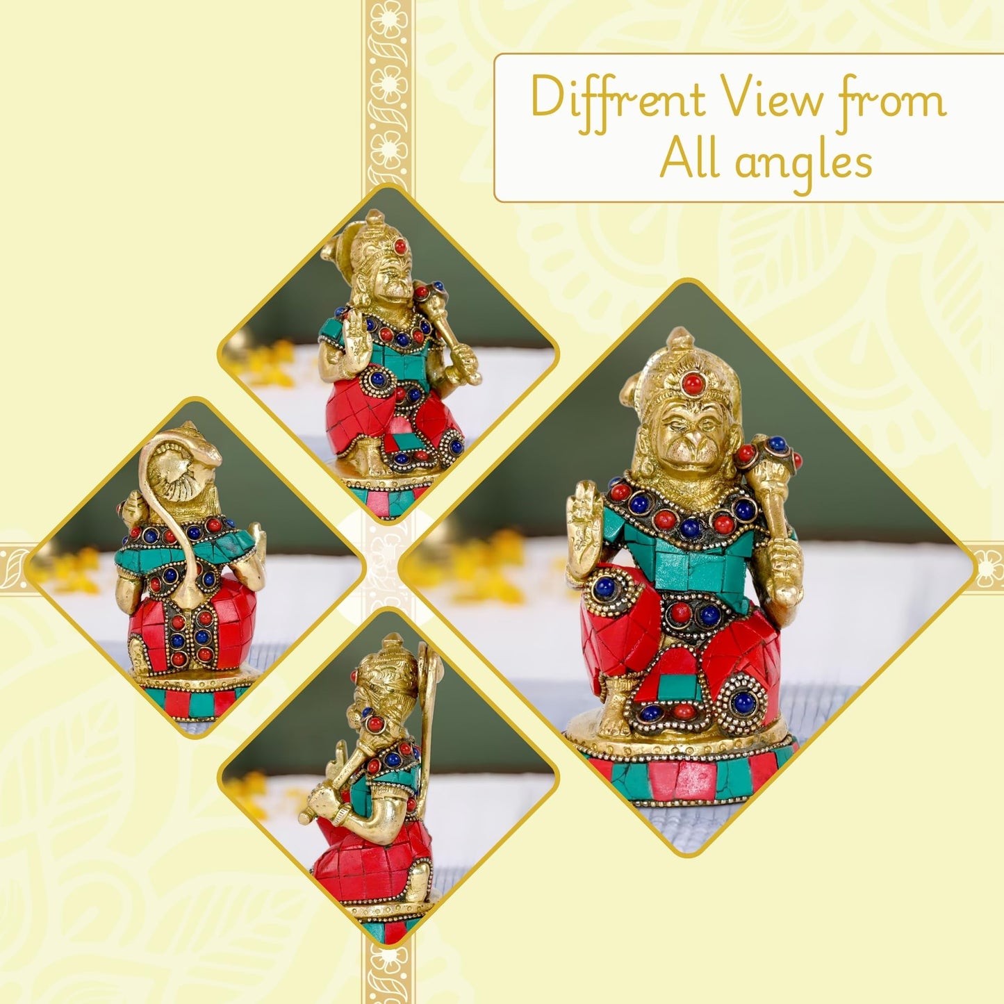 Brass/Idol Lord Hanuman ji Murti Statue Handcrafted Showpiece for Pooja/Gift (3x2.5x5 inches), Weight - 0.9 kg