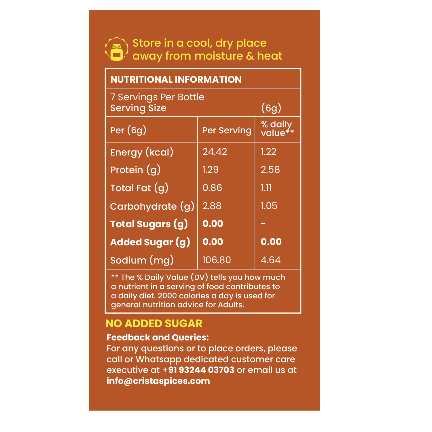 CRISTA 45 gms, Savoury Indian Curry Powder | Multipurpose Flavourful Blend | All Spices Powder | No Added Sugar | No Onion | No Garlic | Vegan | Zero added Colours, Additives & Preservatives