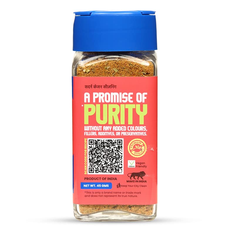 CRISTA 45 gms Southern Cajun Seasoning for Fries, Popcorn & Appetizers | Mixed Spices Blend | Vegan | Zero added Colours, Fillers, Additives & Preservatives