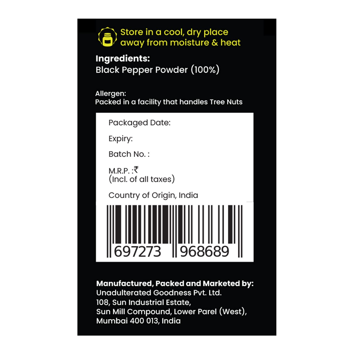 - Store in a cool, dry place away from moisture & heat.