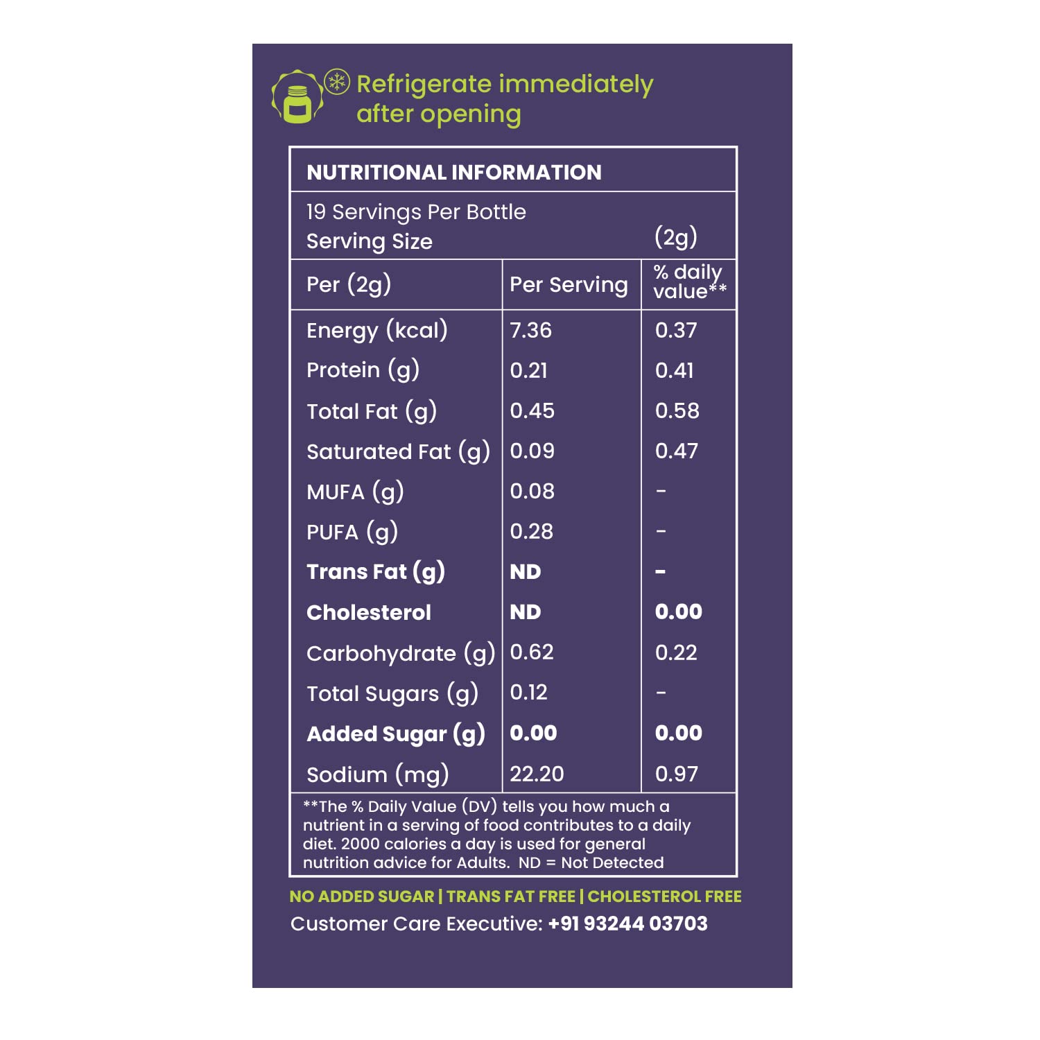 - No Added Sugar. Cholesterol Free. Trans Fat Free. No Onion No Garlic.