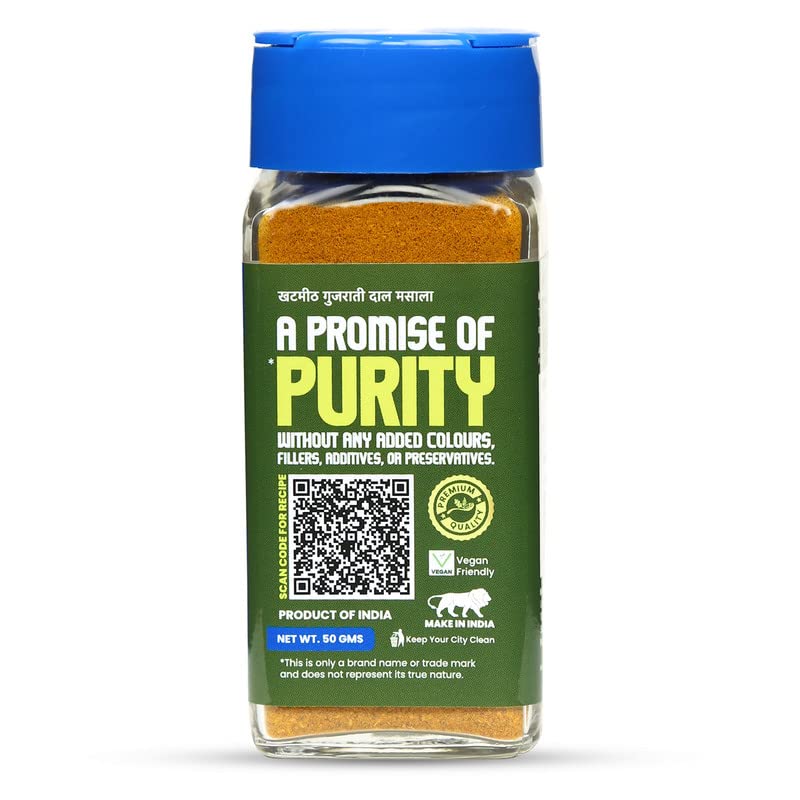 CRISTA KhatMeeth Gujarati Dal Masala Blend | No Onion | No Garlic | Vegan | Low in Sodium | Zero added Colours, Fillers, Additives & Preservatives | 50 gms