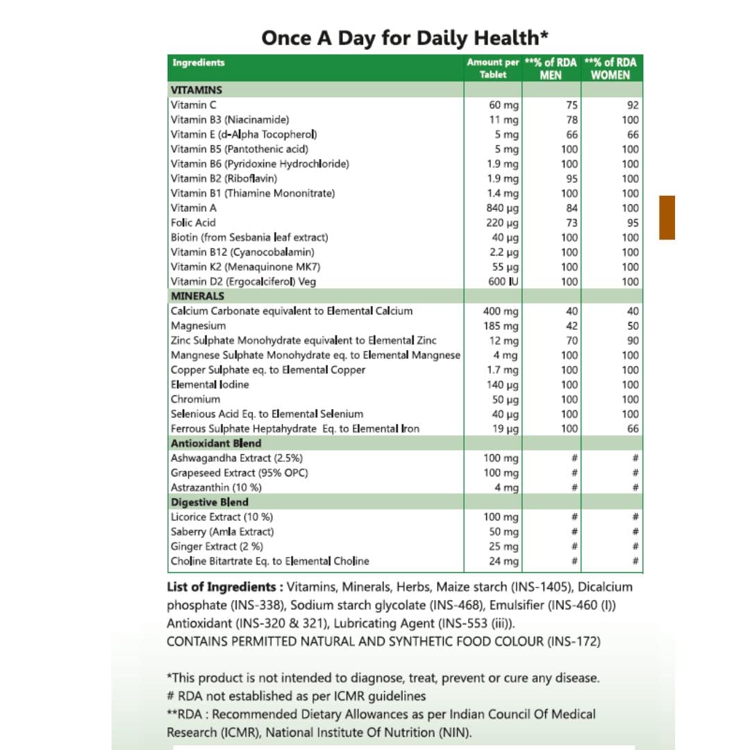 - Product Benefit: Once a tablet of Daily Multivitamin with herbs is best for active lifestyle support and fills nutrition gap.
