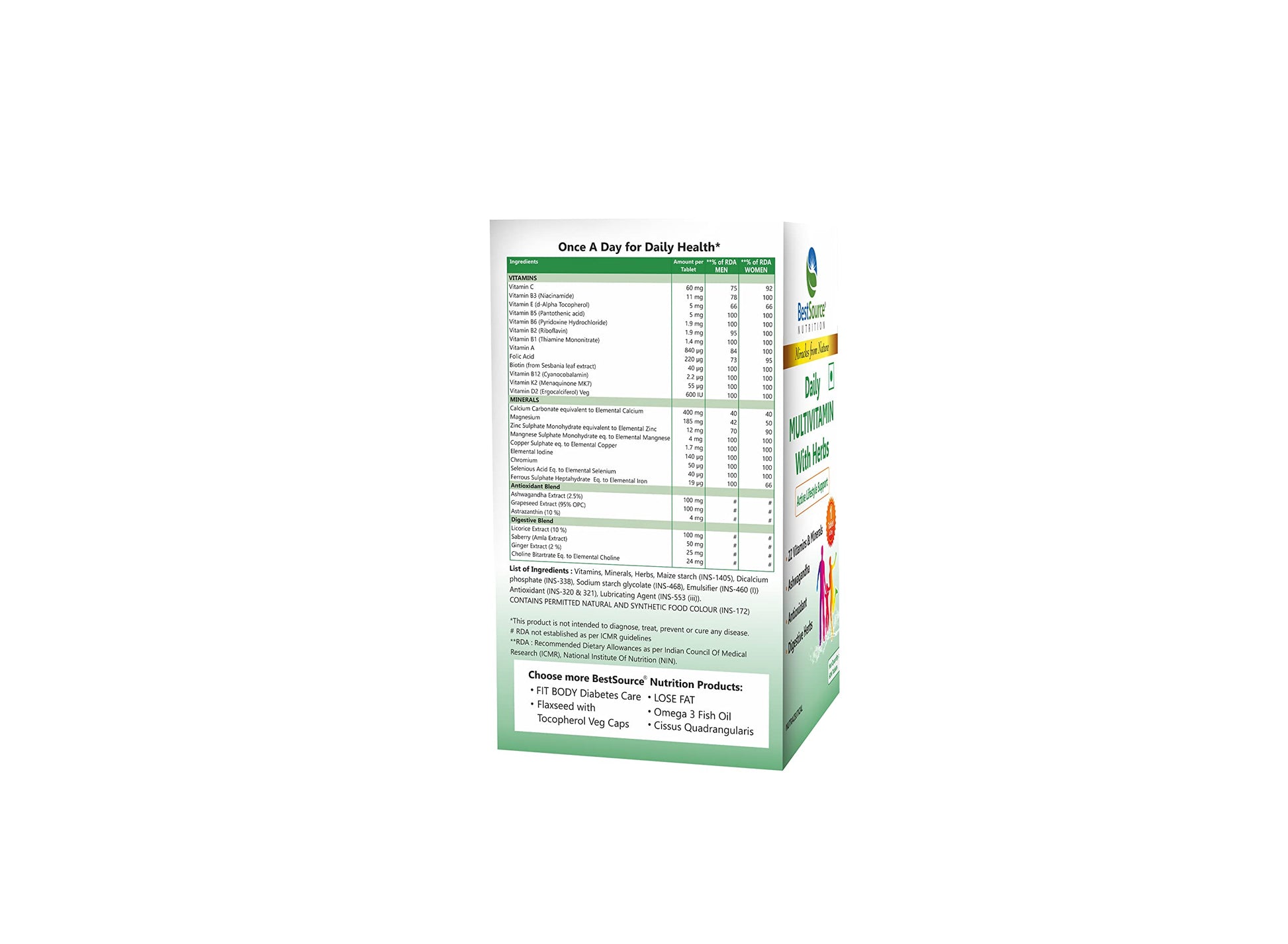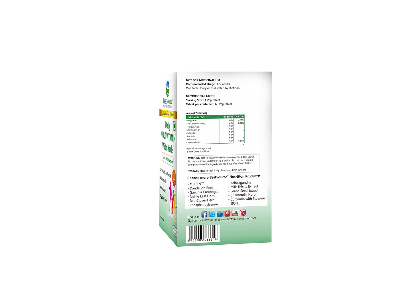 - Serving: One tablet daily of Daily Multiitamin with herbs of BestSource