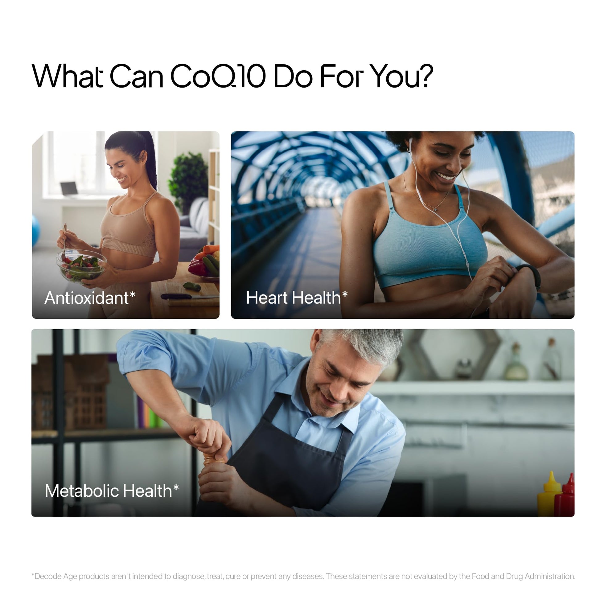 Decode Age CoQ10 100mg, Coenzyme Q10 with Piperine, 99% Pure, Higher Energy Levels, Antioxidant, Healthy Heart, 60 Veg Capsules