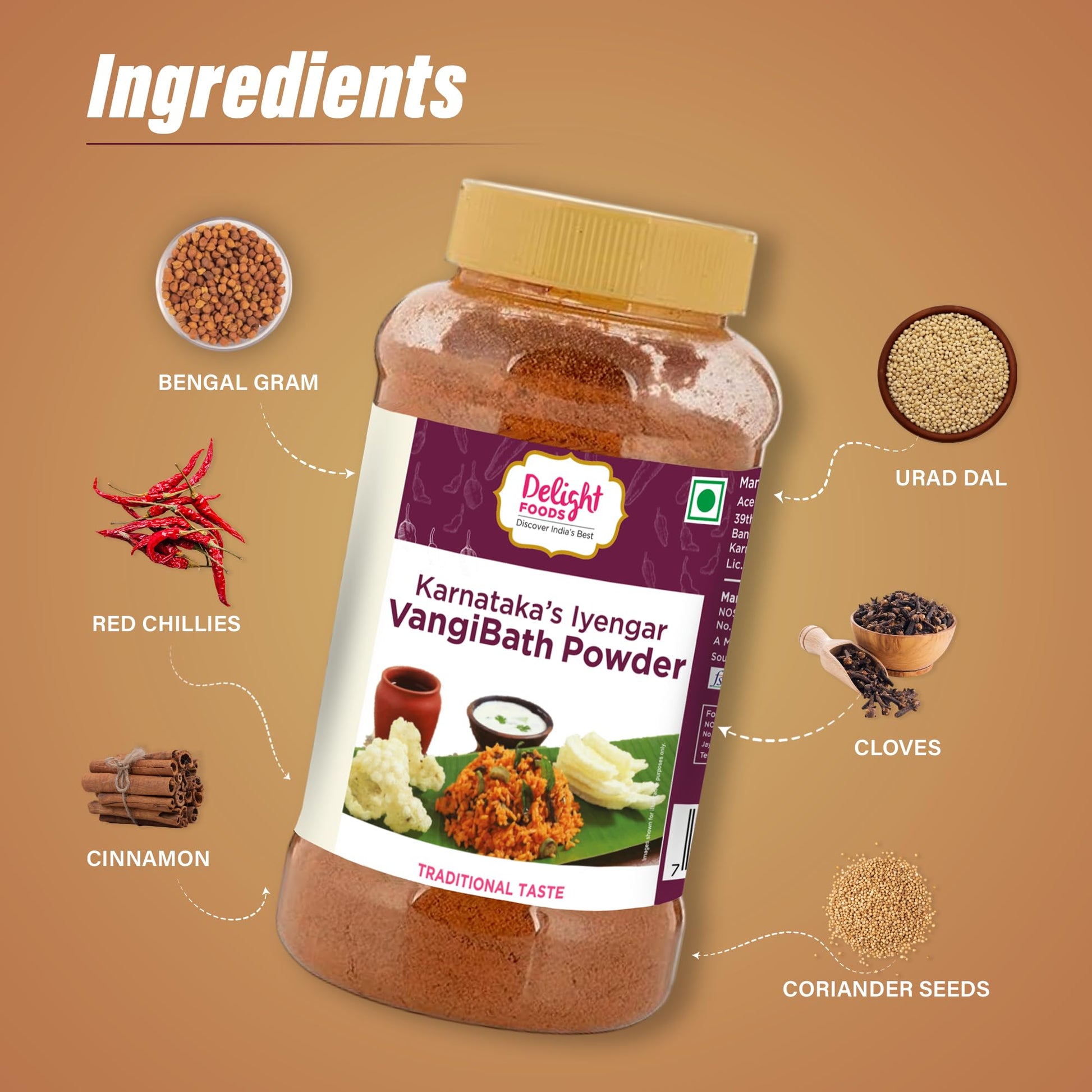 Delight Foods Karnataka Iyengar Vangibath Masalas Powder, 250g