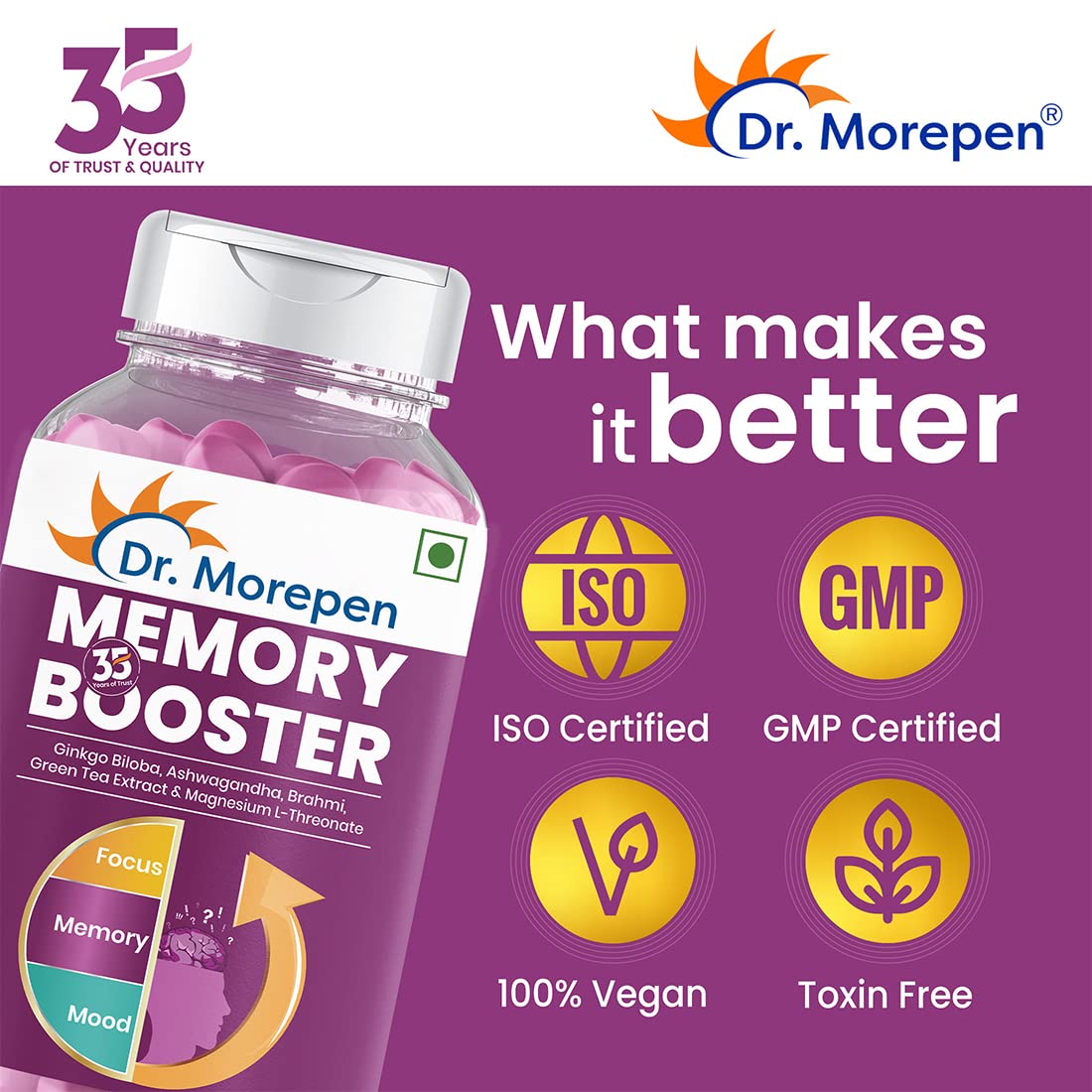- Our Memory Focus & Mood Tablets are ISO Certified, GMP Certified, Non-GMO & Free from Preservatives. Dr. Morepen ensures to provide the highest quality formulation with rigorous checks & testing. We bring the trust and credibility of more than 20 Years to give you the best of Nature backed by Science.