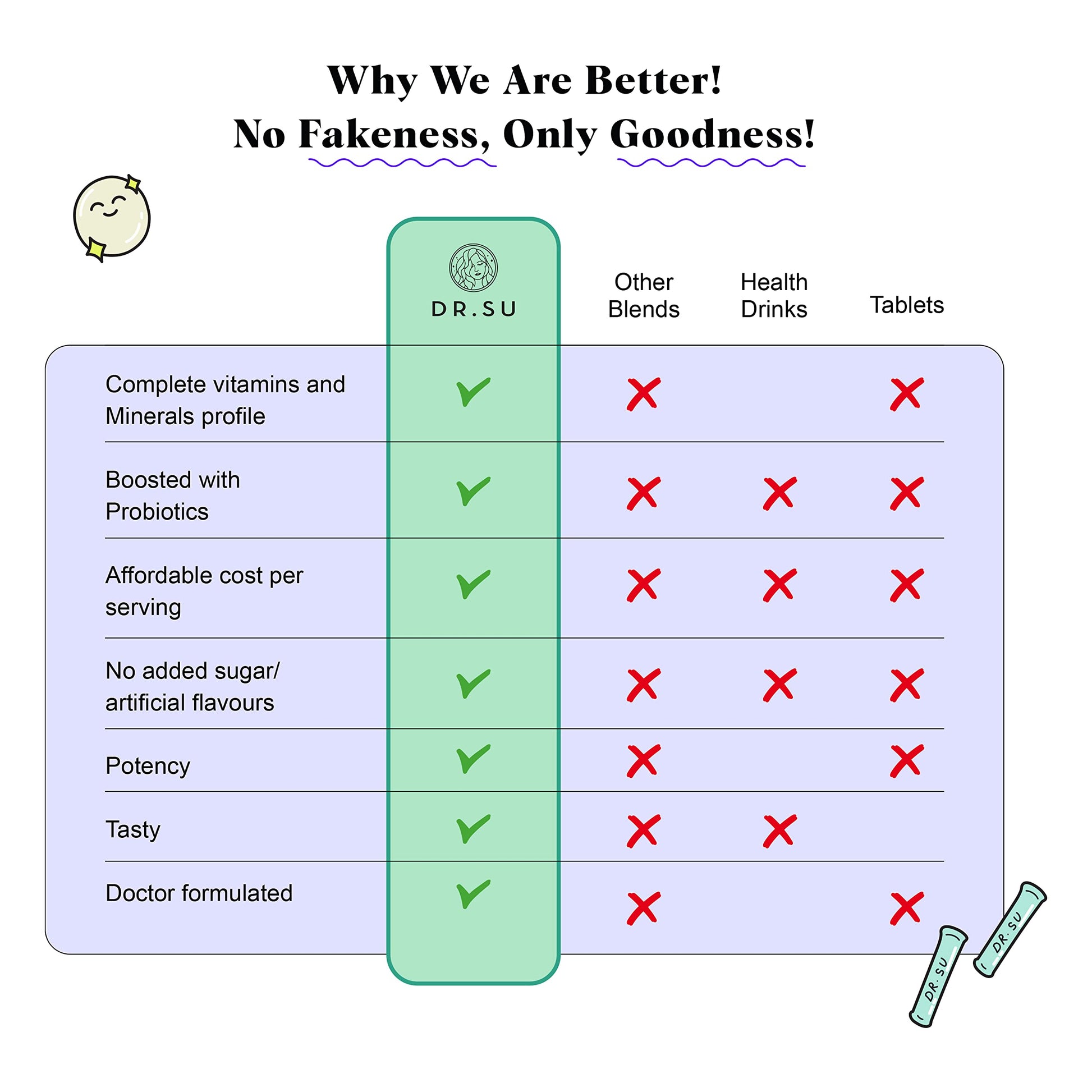 Dr.Su 6-In-1 Supplement Powder | Clear Skin, Strong Hair & Healthy Gut | With Vitamins, Minerals, Antioxidants, Probiotics, Fiber & Adaptogens | Lemon Mint | Sugar-Free | 30 Sachets | Unisex