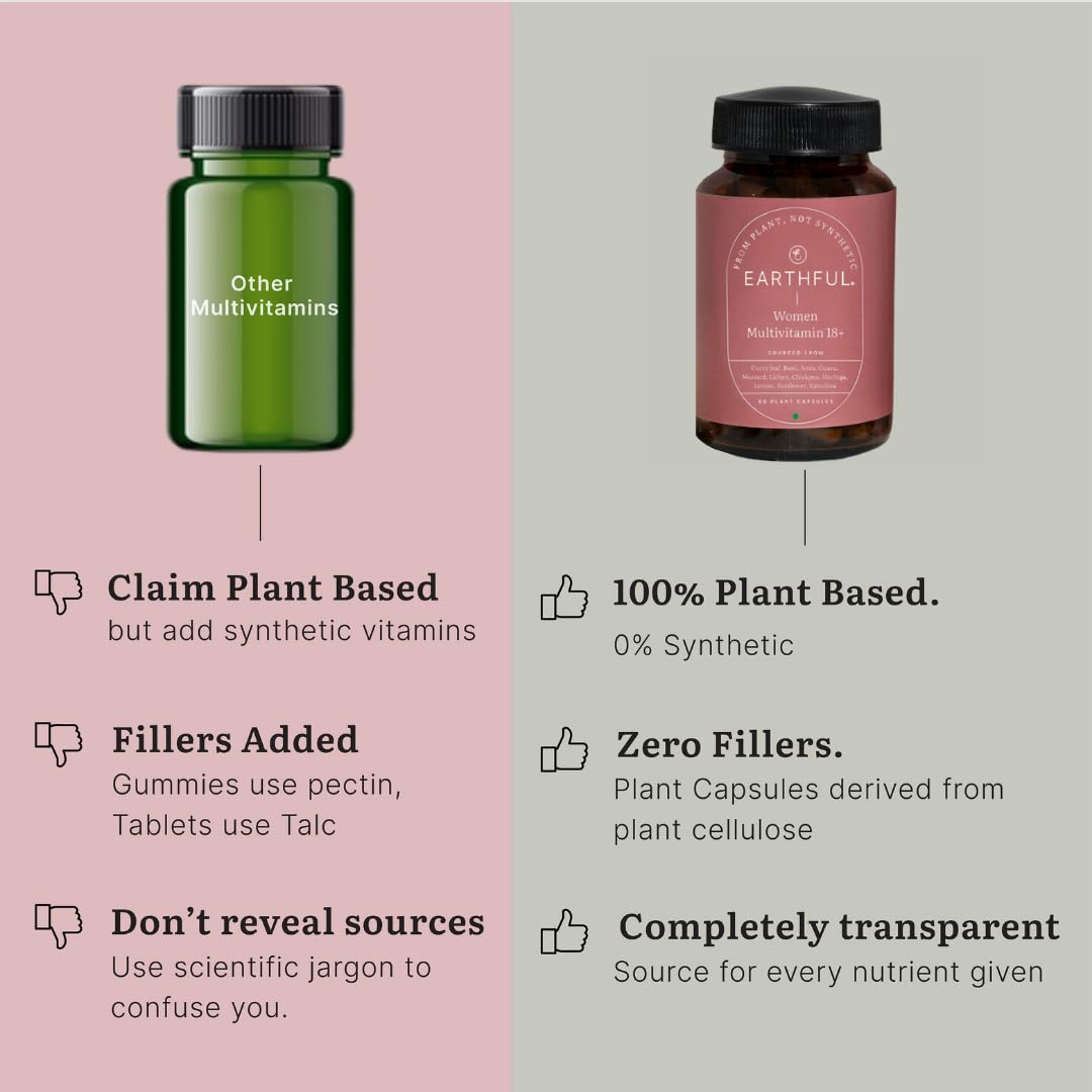 - 100% PLANT DERIVED. 0% SYNTHETIC. This is a unique formulation available in India for the very first time where vitamins, minerals are sourced solely from Plants. There are NO synthetic ingredients used.