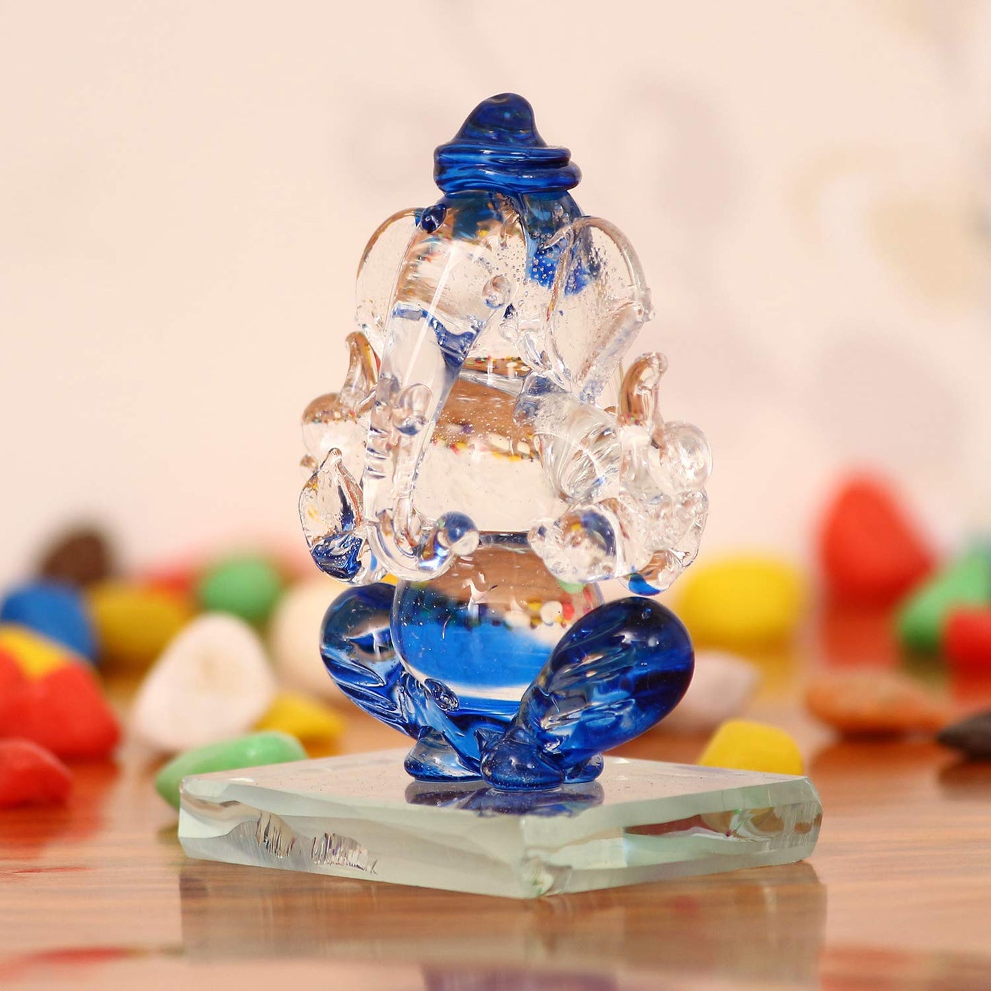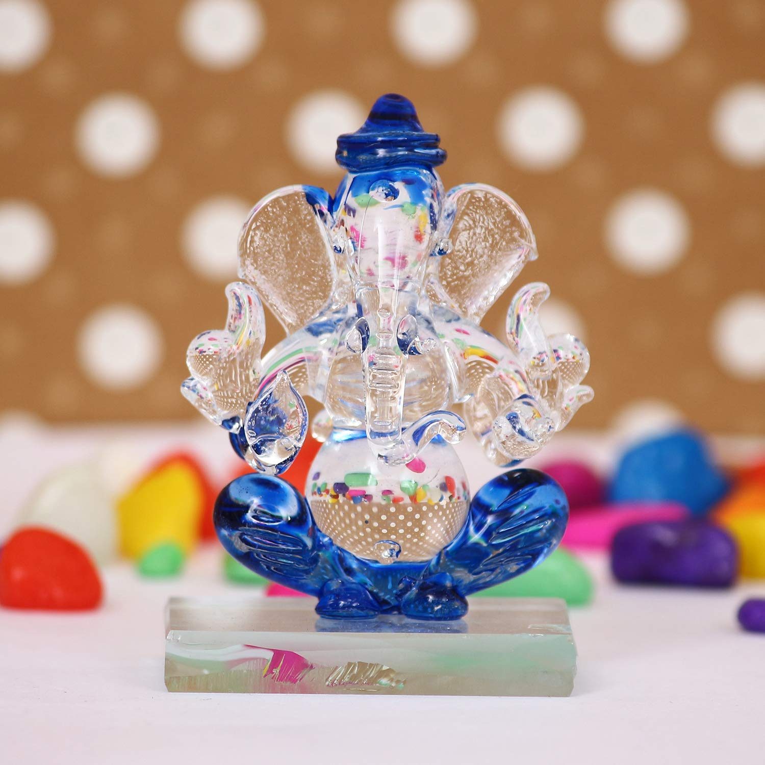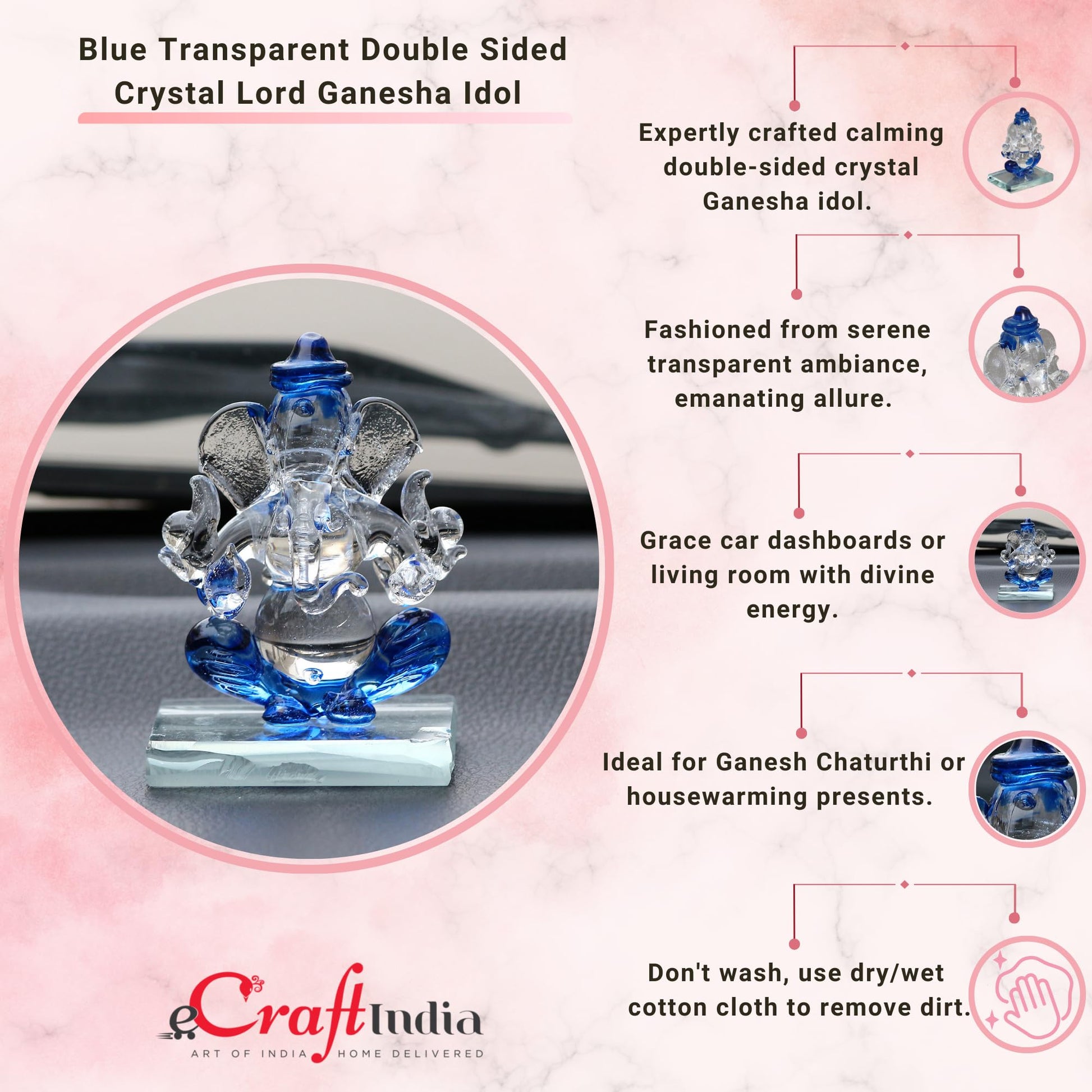- Package Content - One Blue and Transparent Double Sided Crystal Car Ganesha Showpiece