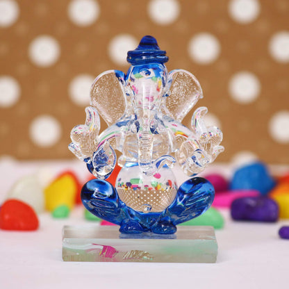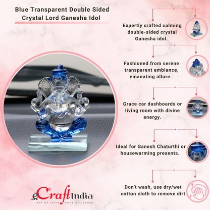 eCraftIndia Blue and Transparent Double Sided Crystal Car Ganesha Showpiece