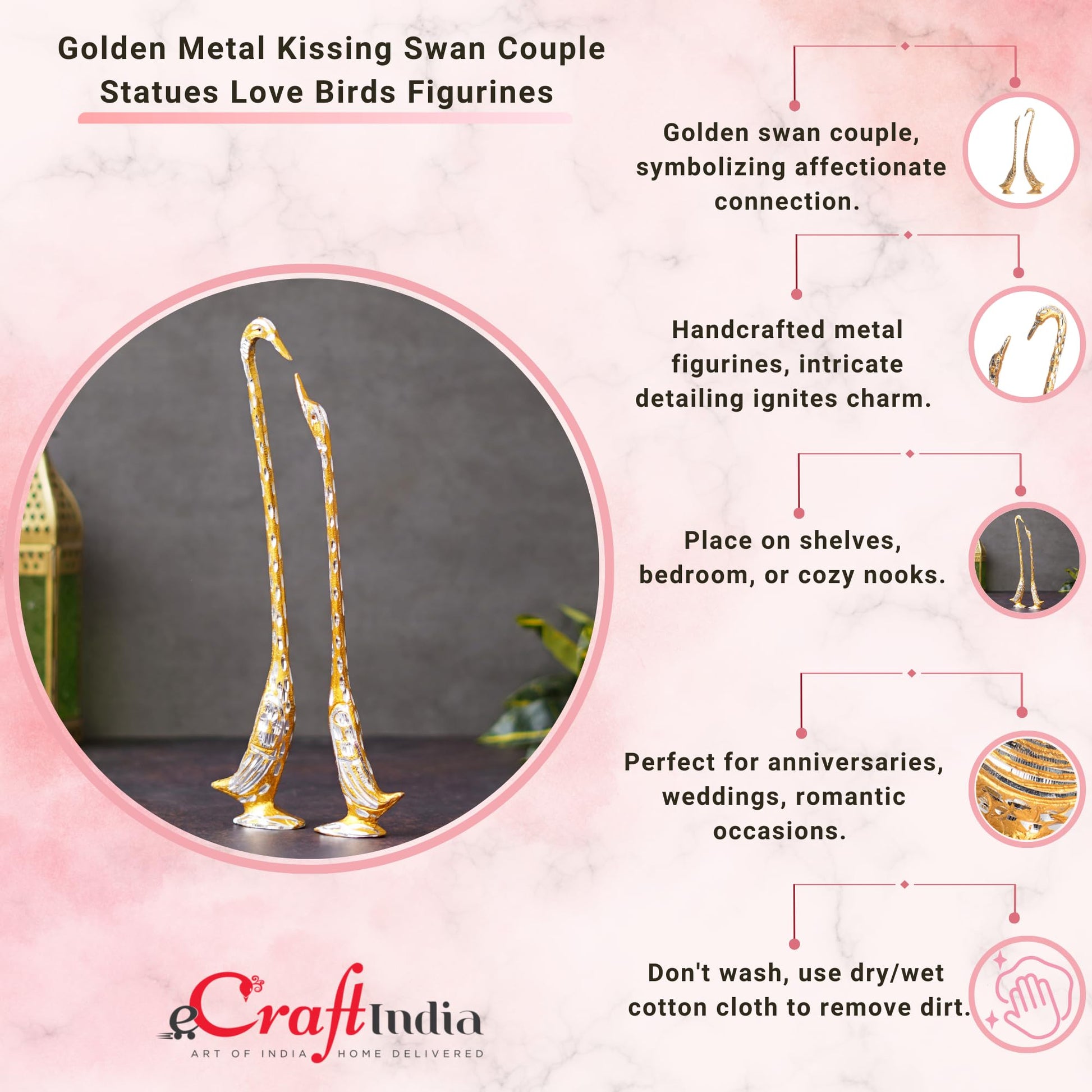 eCraftIndia Cute Love Birds Decorative Metal Figurine (15 cm x 5 cm x 33, Silver and Golden)