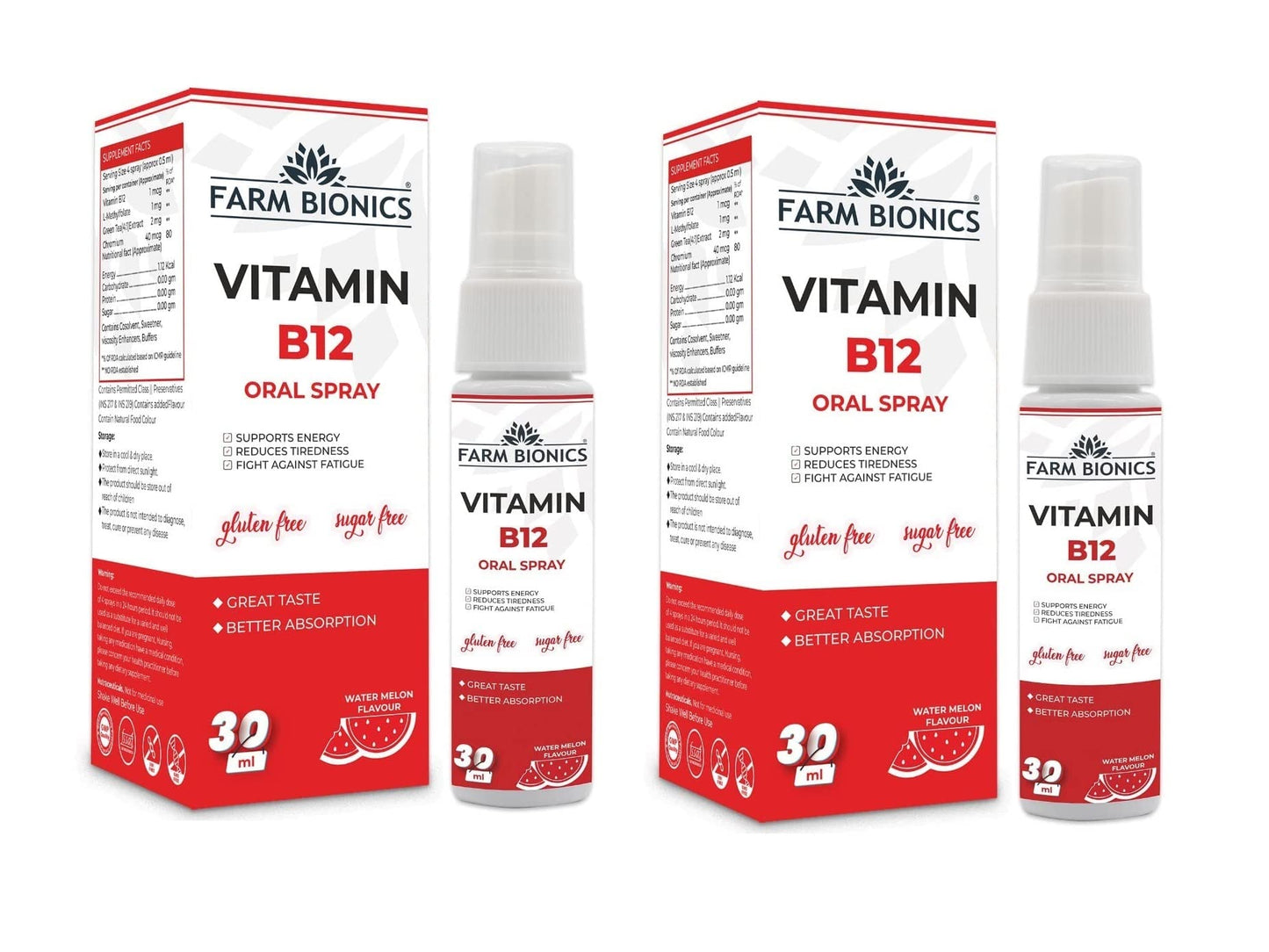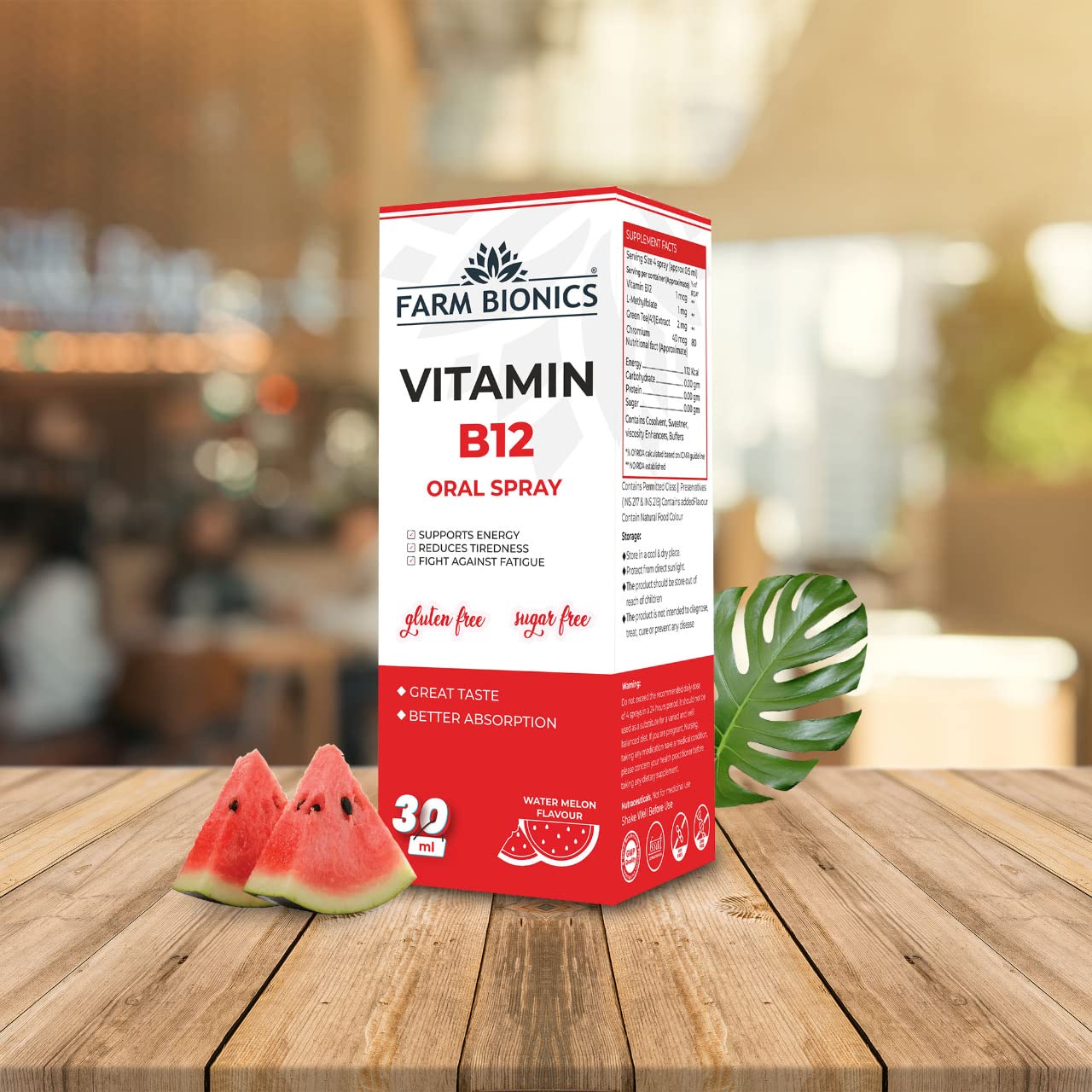 FARM BIONICS Vitamin B12 Drop Oral Spray, 30Ml|100% Vegetarian|Sugar Free|Gluten Free (Watermelon, Pack Of 2)