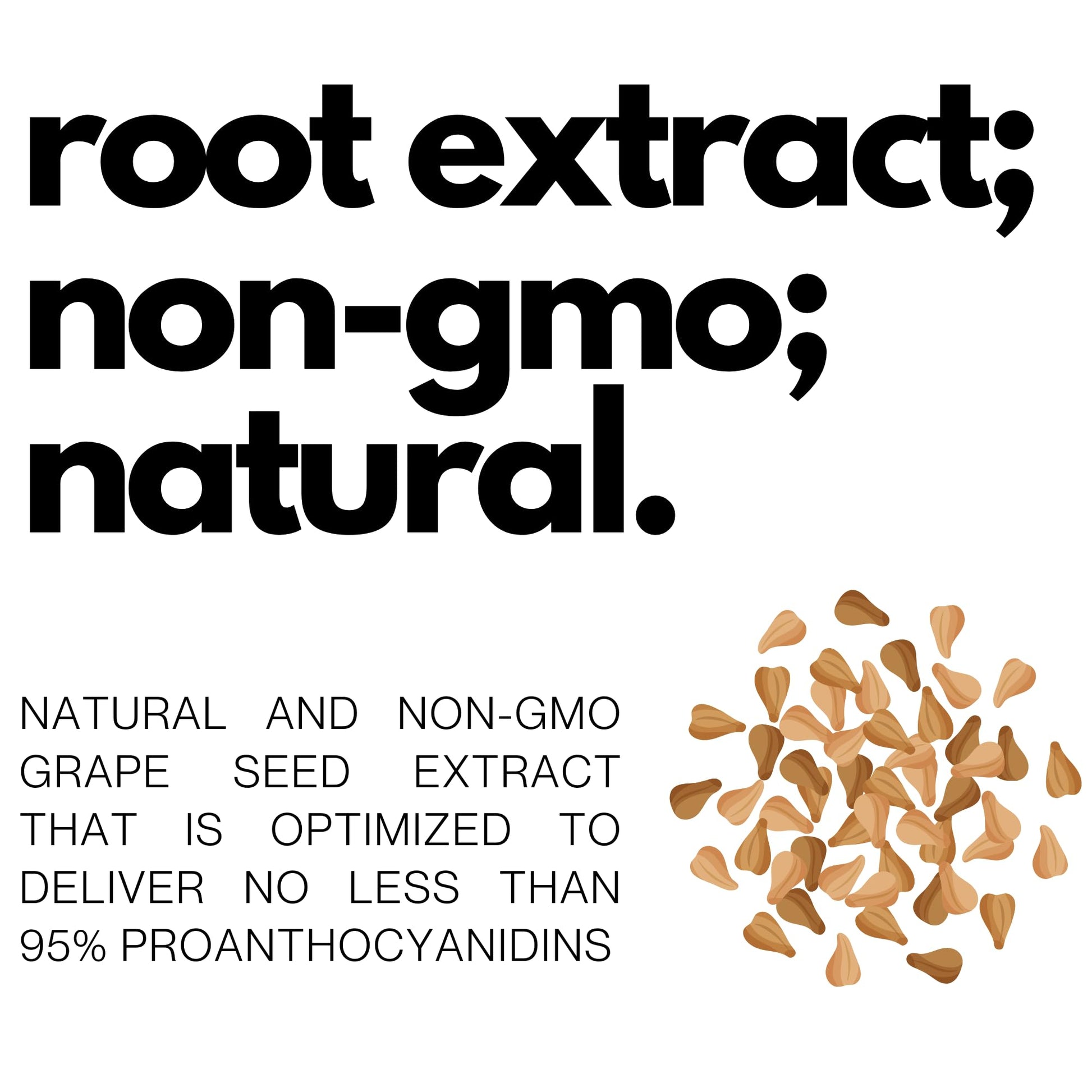 - Herbal Supplement: Grape Seed Extract is a natural supplement derived from the seeds of Vitis vinifera (grape). It contains a standardized 95% proanthocyanidins, powerful polyphenols known for supporting cardiovascular wellness, antioxidant protection, and healthy circulation.