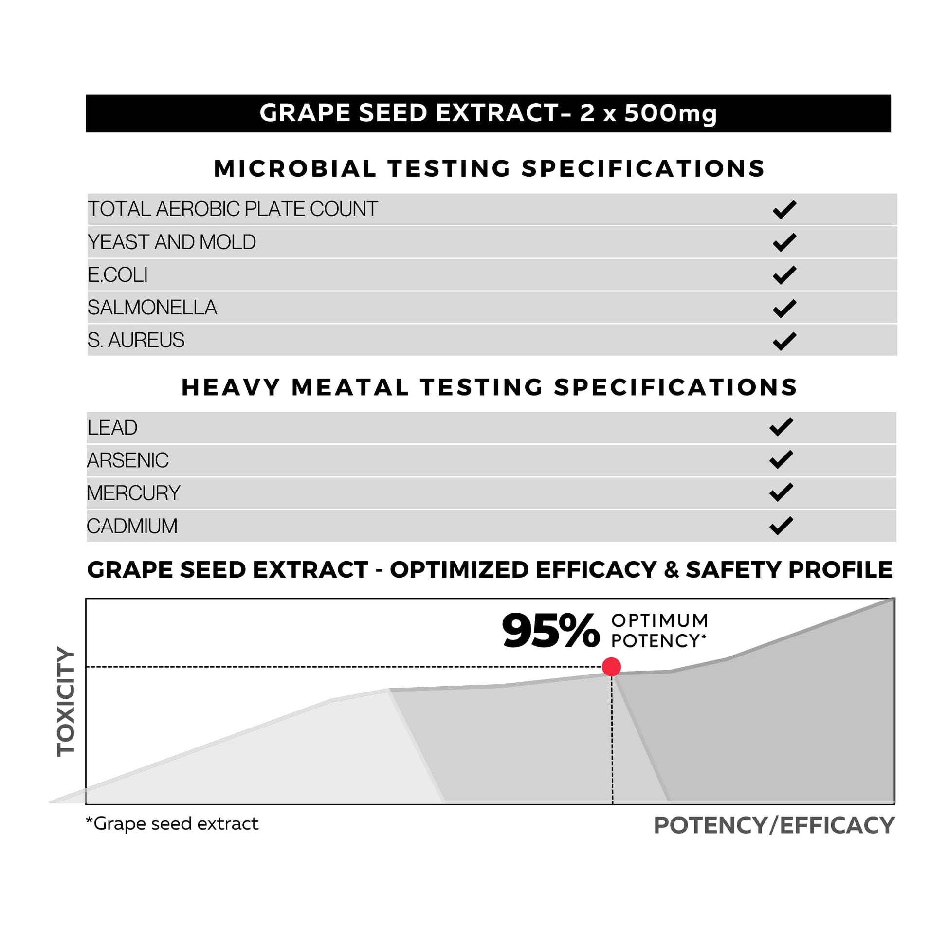 - Tested & Trusted: Our Grape Seed Extract 95% is produced in GMP-compliant and US-FDA registered facilities and undergoes rigorous third-party testing for purity, potency, and safety. It is non-GMO, gluten-free, vegan, and formulated to meet high quality and transparency standards.