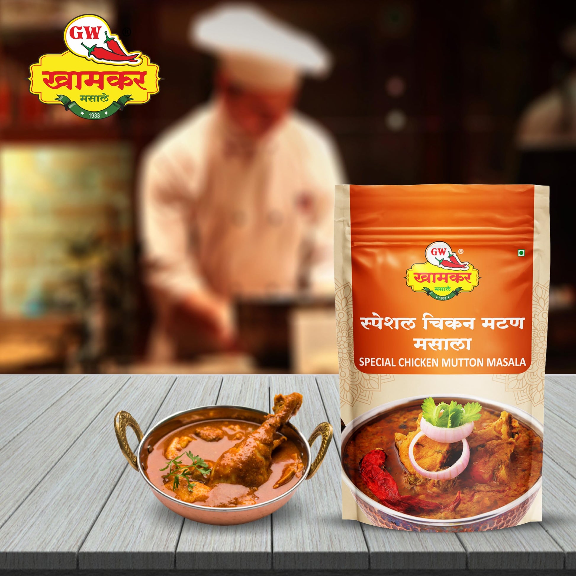 G W Khamkar Special Chicken Mutton Masala, Special for Meat, Meat Masale, Indian Spices, Tasty Maharashtrian Recipe, for Curry,traditionally Pounded, 185 Gm (Pack of 1)