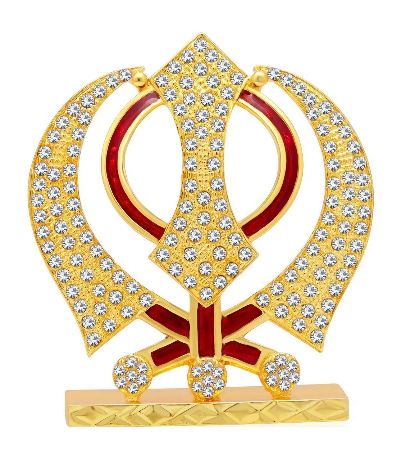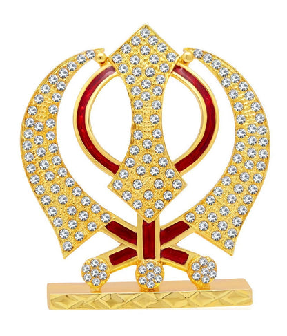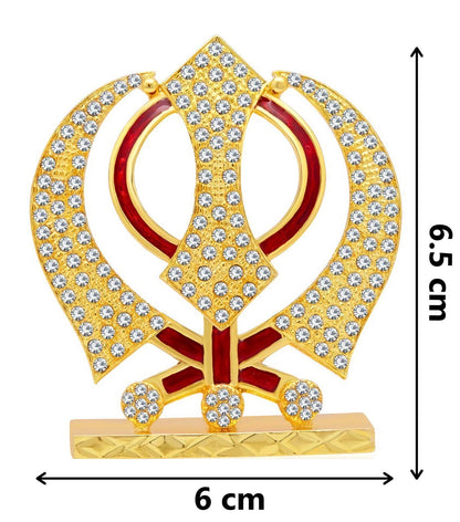 Sikh Religious Symbol Khanda Sahib Idol (B-34) Red Gold Metal Statue for Home Décor Car Dashboard Mandir Pooja Murti Showpiece