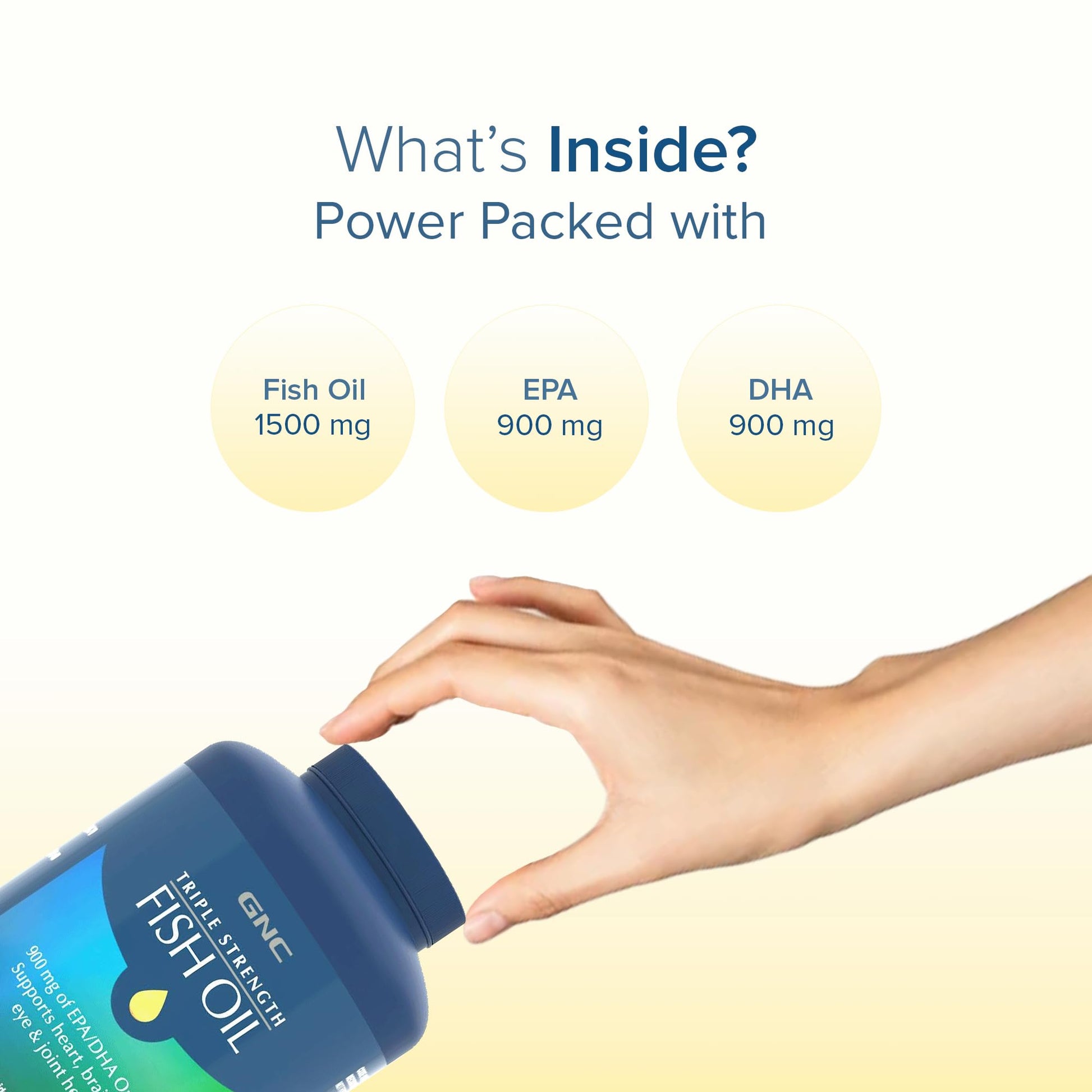 GNC Triple Strength Fish Oil 1500mg Omega-3 with 900mg EPA & DHA | 240 Softgels | For Heart, Healthy Cholesterol, Joint Comfort, Focus & Vision | Enteric-Coated for No Fishy Aftertaste |USA Formulated