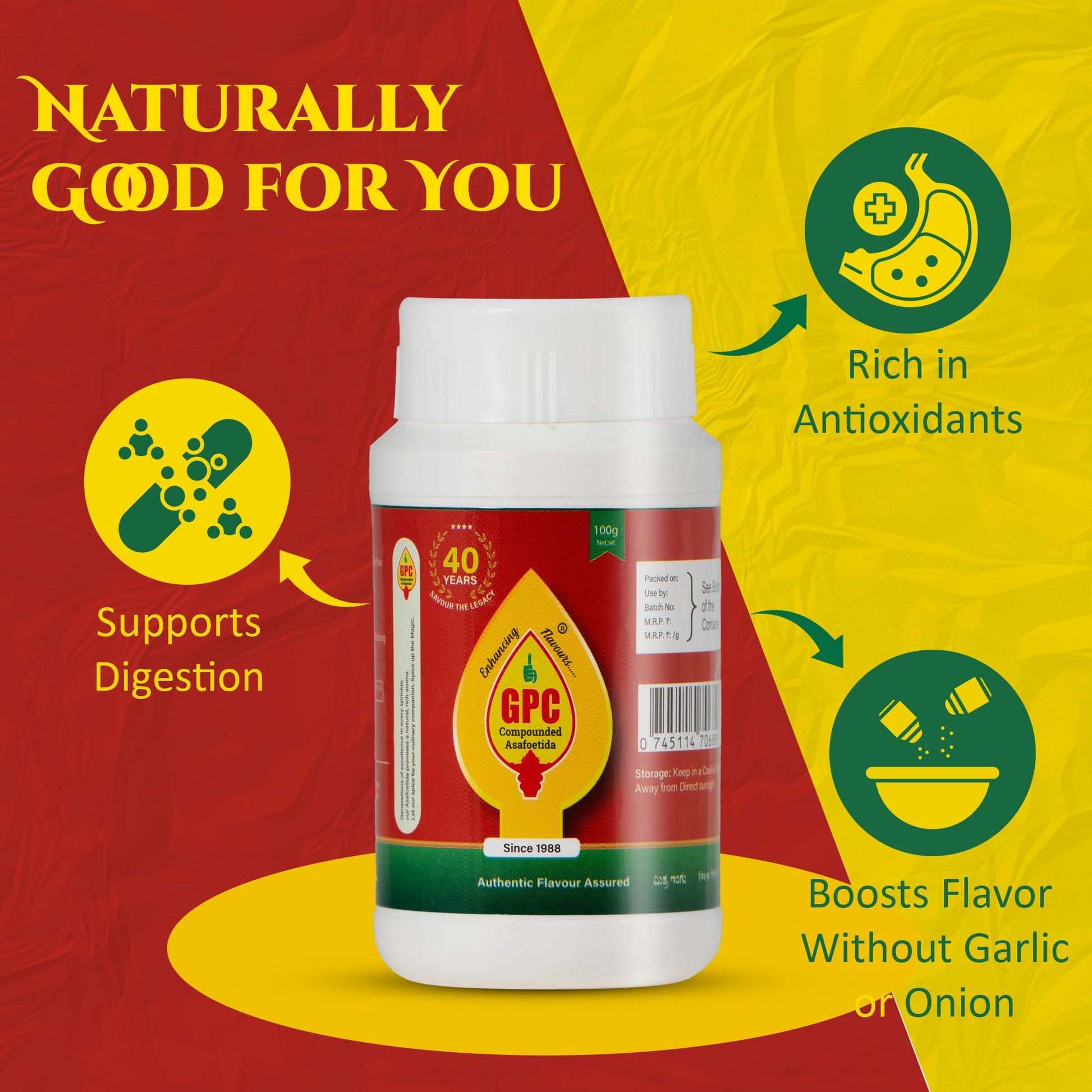 GPC Compounded Hing Powder 100g | Superfine Strong Asafoetida Blend for Rich Flavour and Taste | Zero Added Colors & Preservatives, Antioxidant-Rich, Digestive & Aromatic Spice