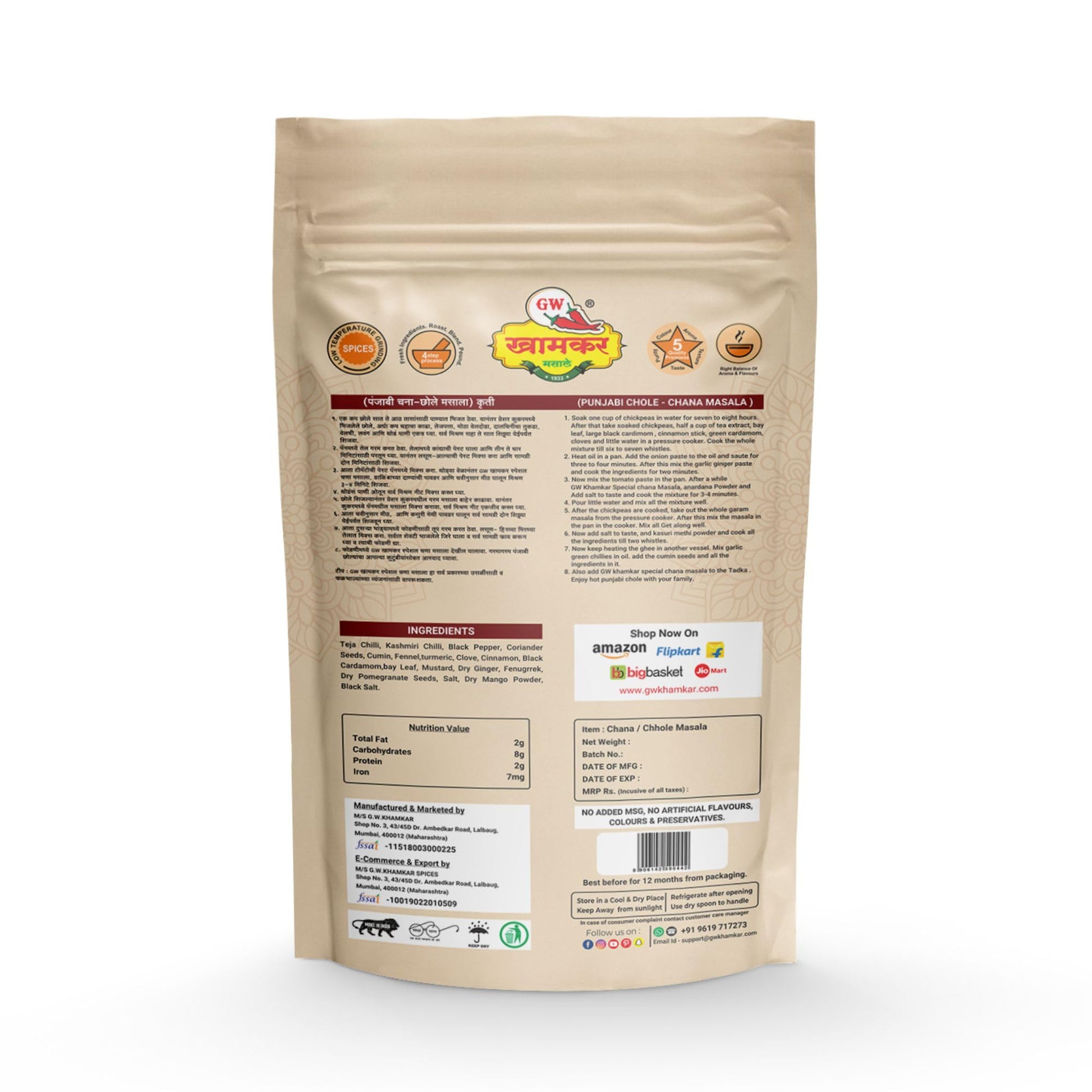 GW Khamkar SPL Chana/Chole Masala | Authantic North Indian Style Spice Blend | Traditionally Pounded | Cold Pressed | Traditional secret recipe | Pure & Natural Spices | Rich & Authantic Taste| No Artificial colour and Preservatives | Pack of 1- 185GM