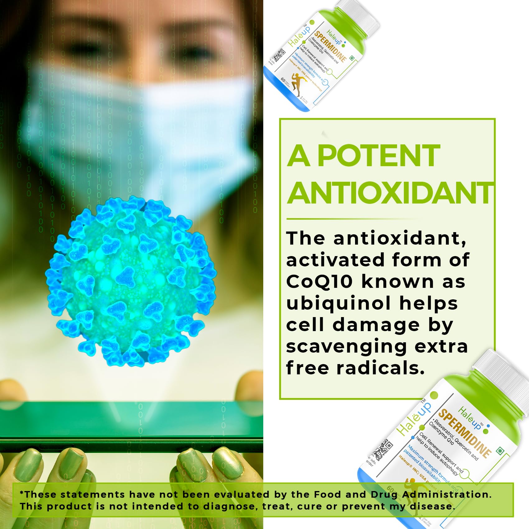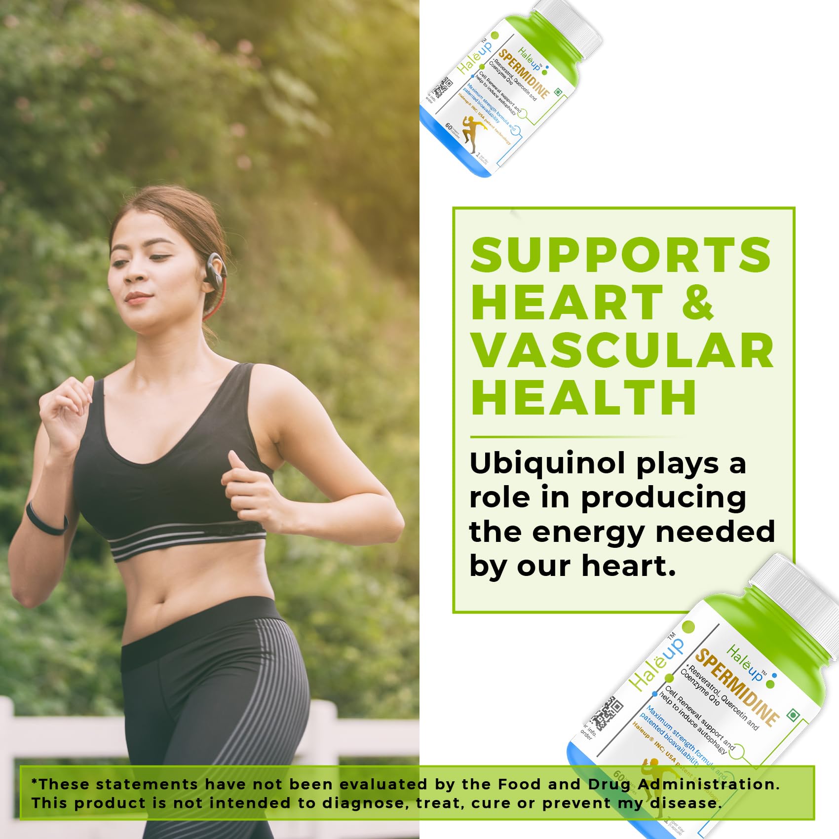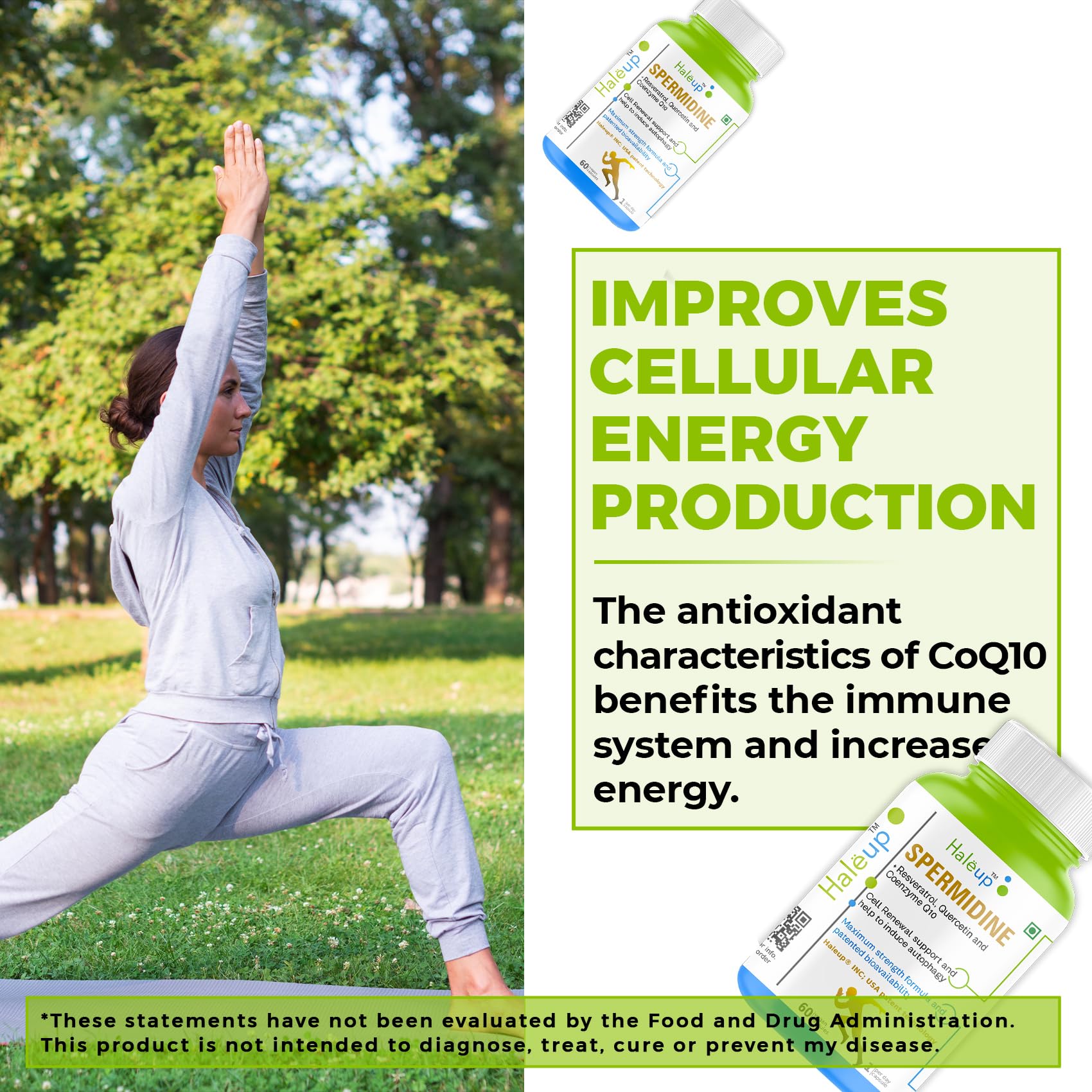 Haleup 99% Spermidine Trihydrochloride with Resveratrol| For Healthy Ageing | Autophagy| Cell Renewal | Immunity| Skin and Hair | Cognitive Support (1 pack X 60s count)