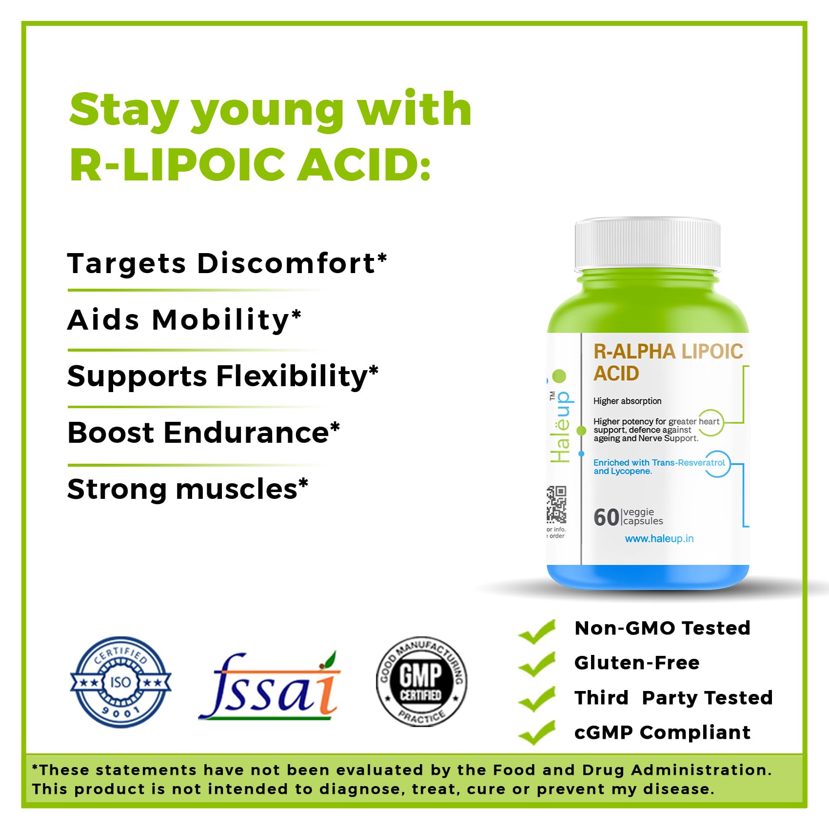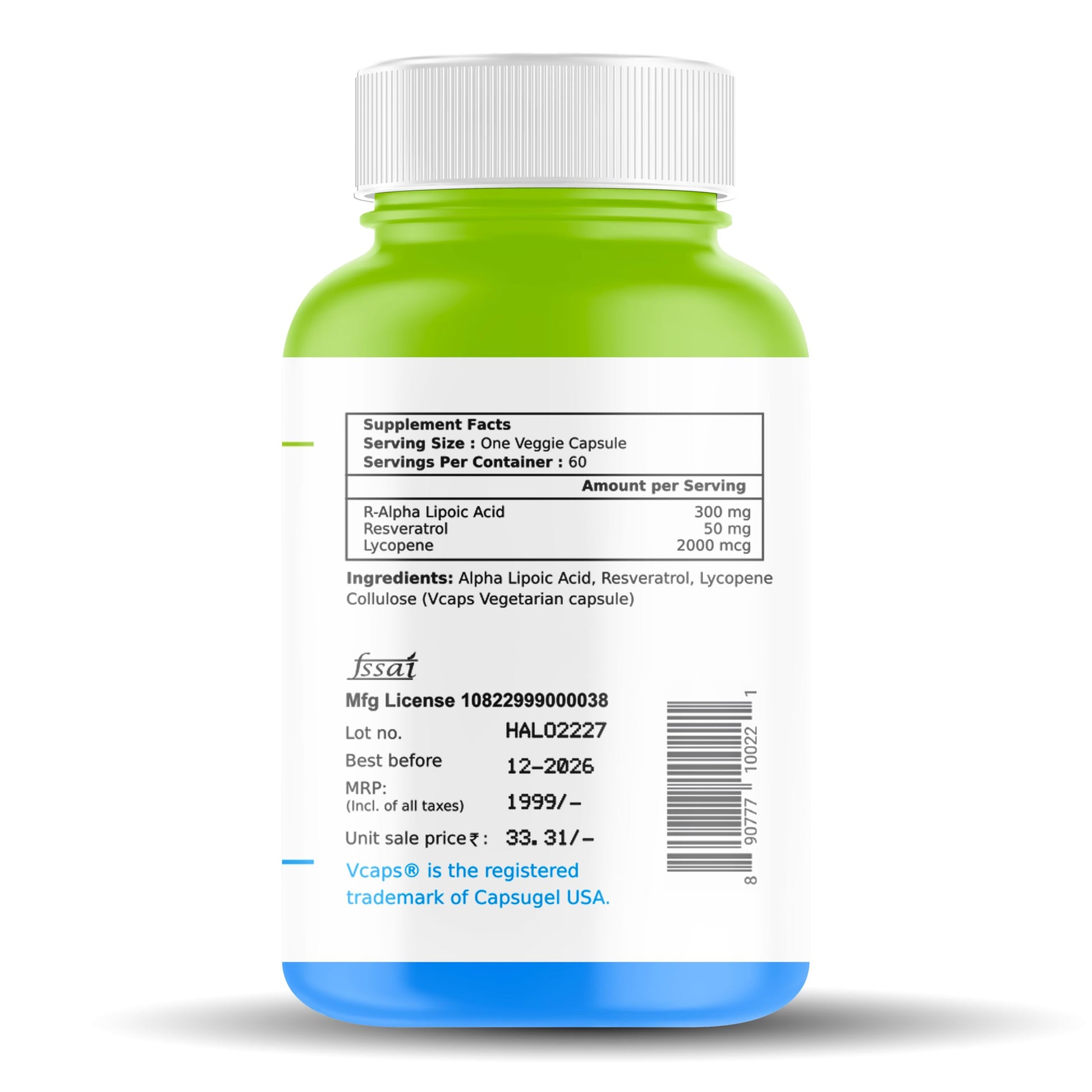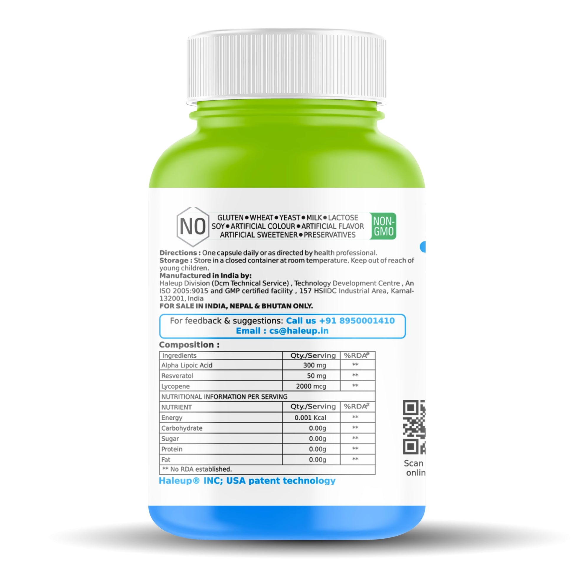 Haleup Alpha Lipoic Acid, 300 mg II Enriched with Lycopene & Resveratrol (60 capsules) || Healthy Liver || Heart || Blood Sugar & Potent Antioxidant