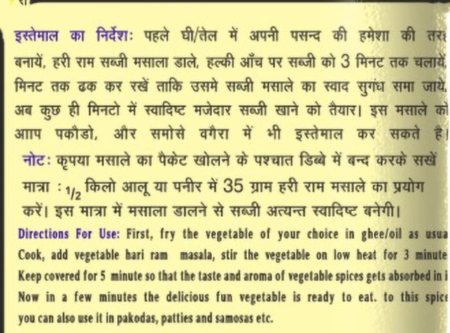 - Hari Ram Prem Narayan & Sons Sabji Masala Powder- 100 Gms Pack of 1