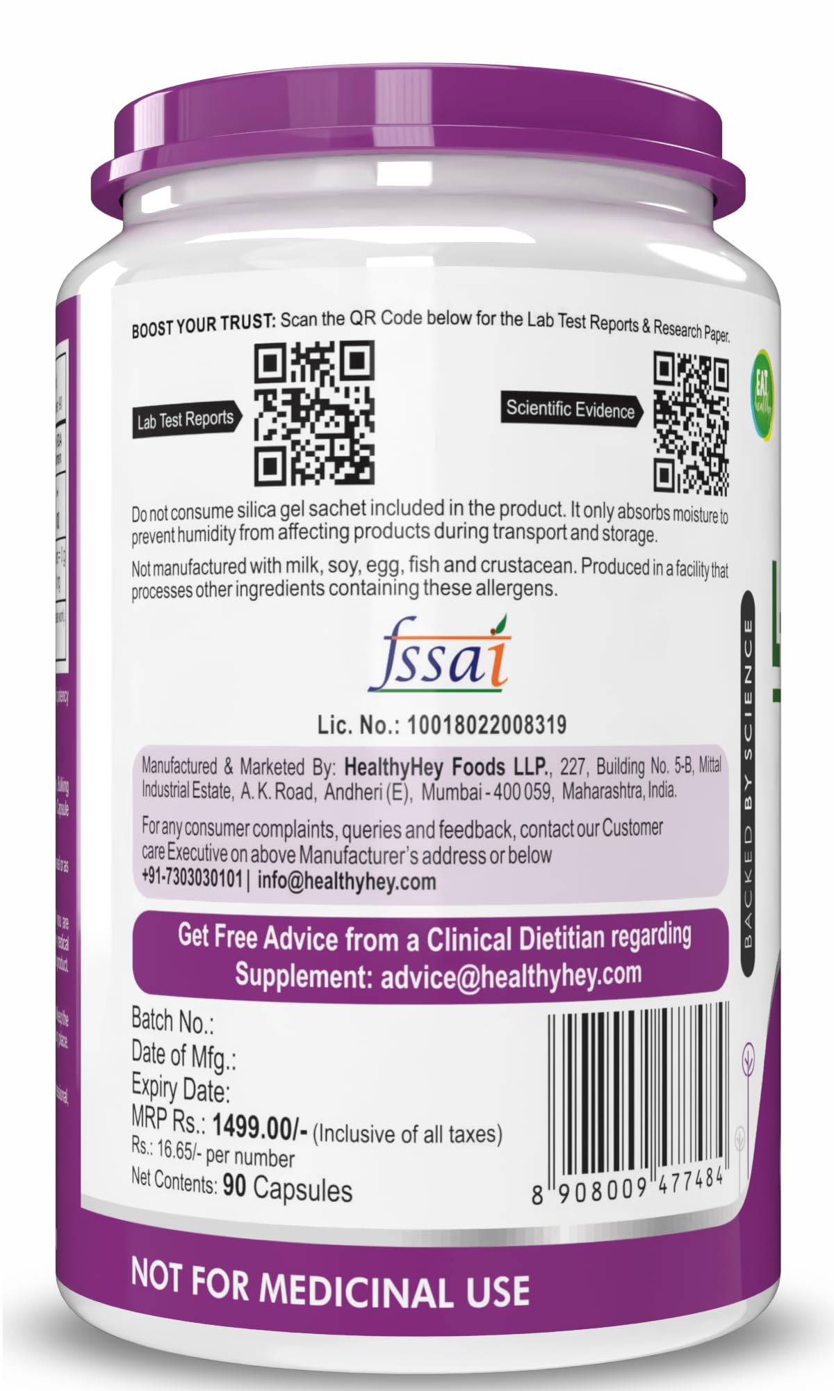 HealthyHey L-Theanine-Support Relaxation - 90 Vegetarian Capsules (Pack of 1)