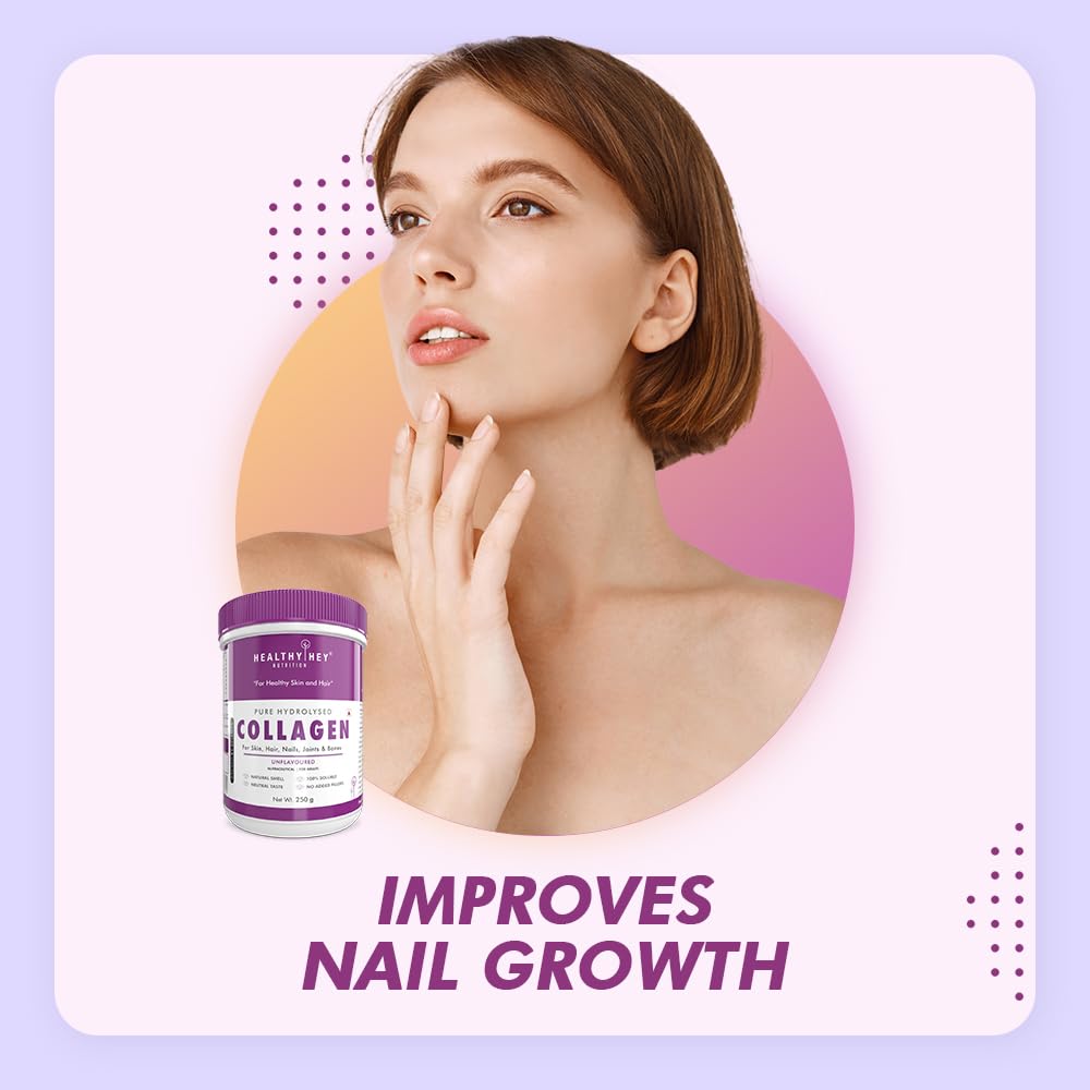 HealthyHey Nutrition Collagen Powder | Collagen Supplement for Glowing Skin | Pure Hydrolysed Collagen Powder for Women and Men | Unflavoured - Pack of 1-250 gm