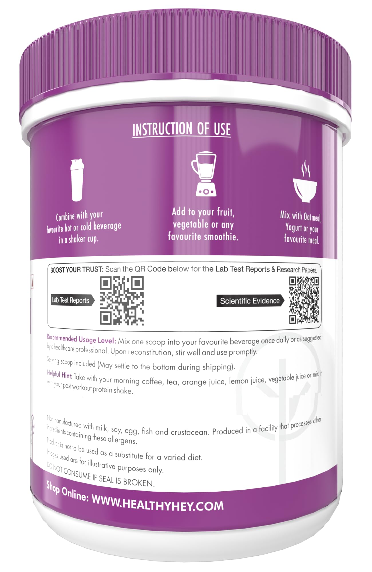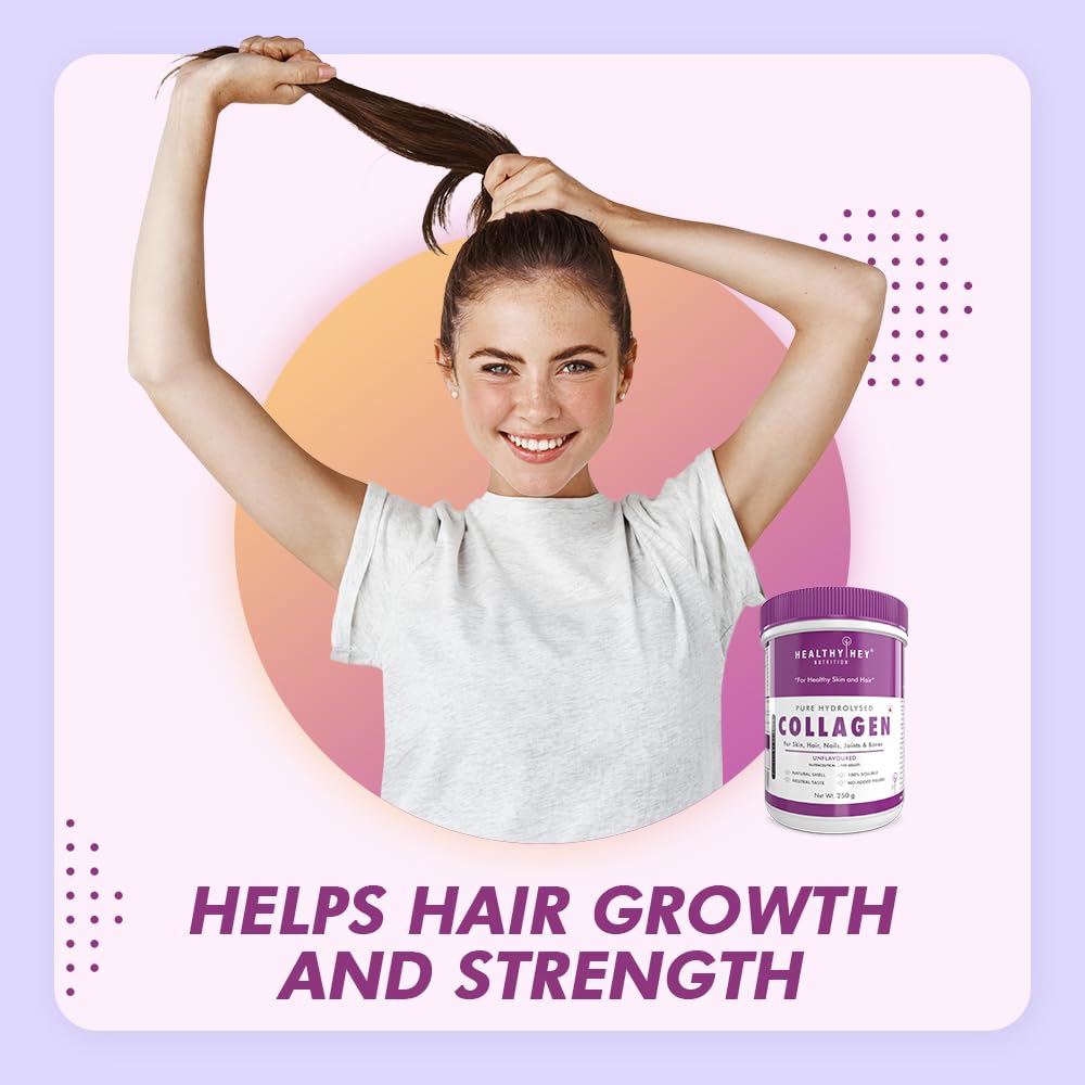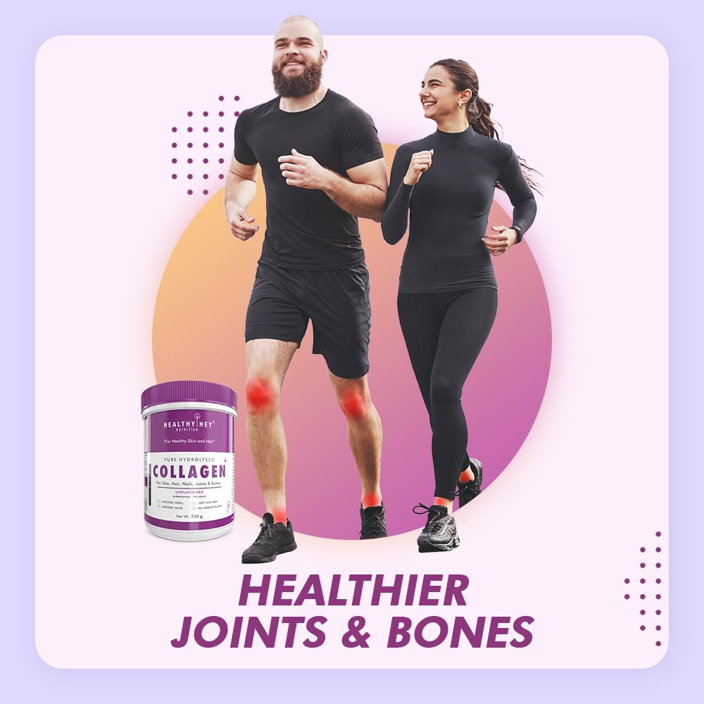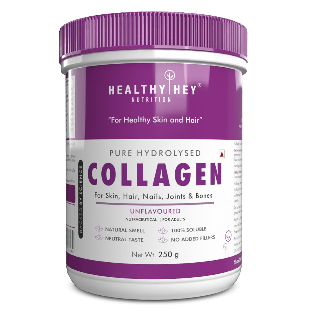 - DIGESTIBLE AND BIOAVAILABLE: Unlike native collagen, HealthyHey Pure Hydrolysed Collagen supplement is highly digestible and bioavailable. Studies have demonstrated that over 90% of Collagen Peptides are digested and available in connective tissues within a few hours of ingestion. This rapid availability ensures the effective delivery of essential peptides and amino acids to the body.