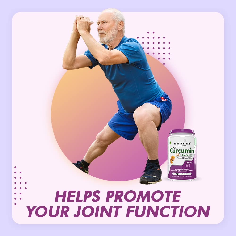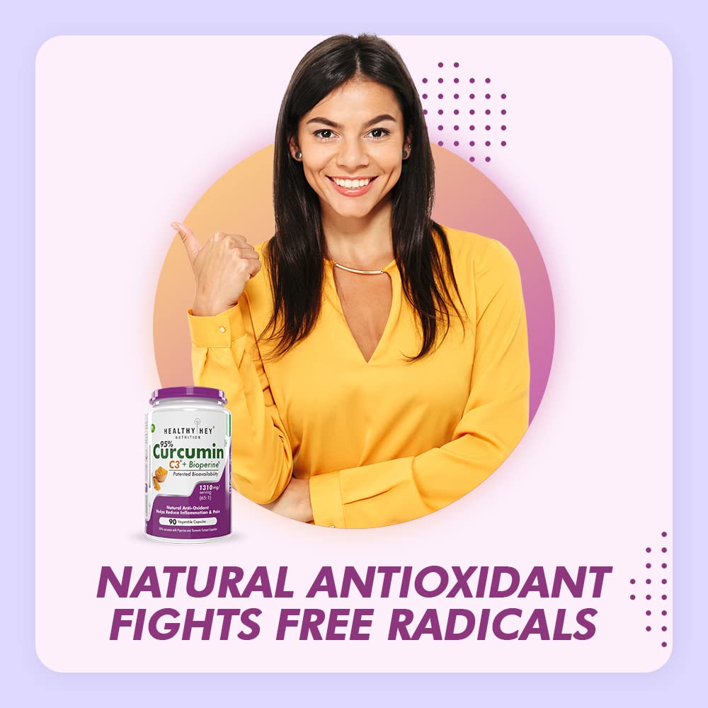 HealthyHey Nutrition Curcumin with Bioperine 1310mg (Ultra Pure) | 90 Vegetable Capsules with Piperine